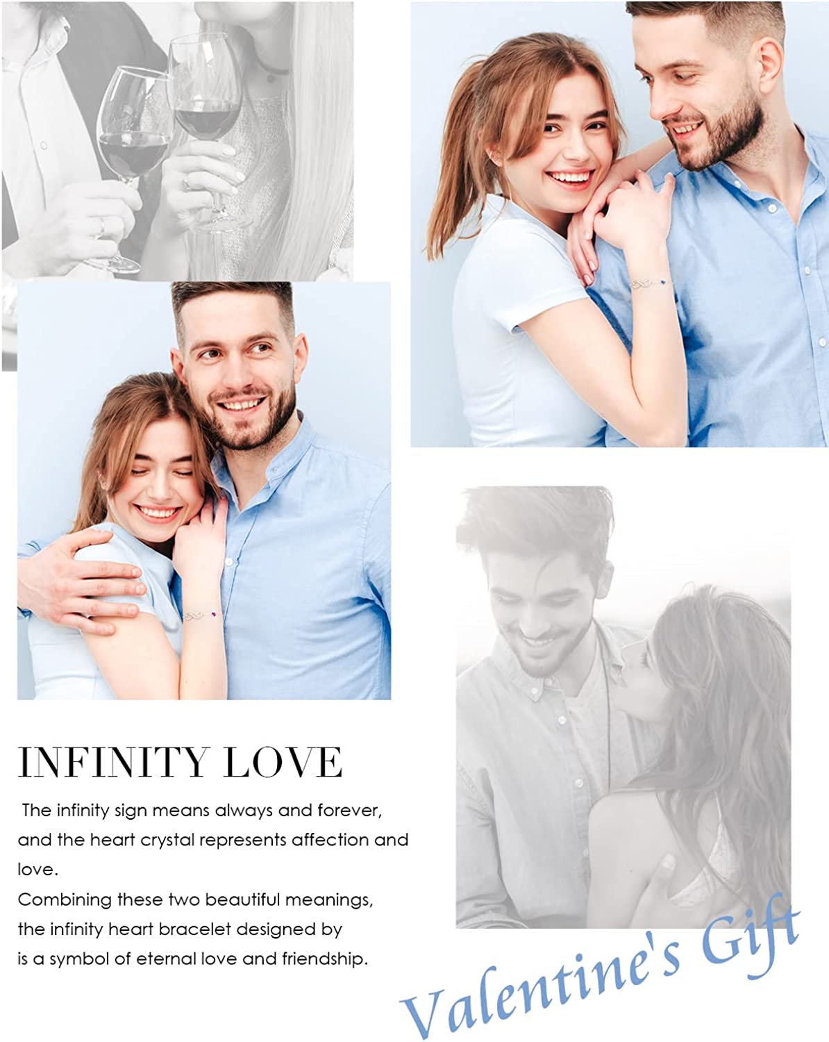 ?BIRTHDAY GIFT? The infinity heart bracelet comes in a nice gift box, presented as a jewelry gift for mom, wife, grandma, aunt, girl, daughter, granddaughter, sister or friend; given as a Christmas gift, birthday gift, wedding gift, anniversary gift, graduation gift or valentine's day gift.