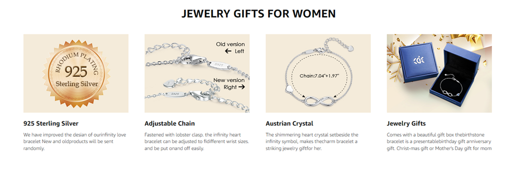 • ? 925 STERLING SILVER BRACELETS ? CDE women’s bracelets are made of gold-plated 925 sterling silver. Fastened with a lobster clasp, this adjustable bracelet is embellished with a heart charm and an infinity symbol glittering with Austrian crystals.