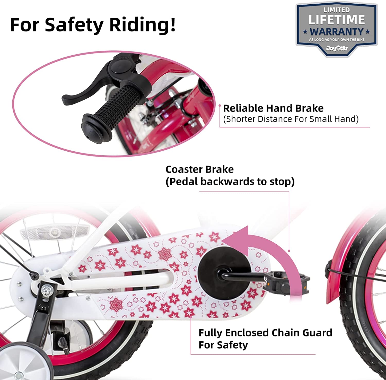 - ✔Safe for Younger Rider - Front Handbrake and Rear Coaster brake are easy to provide phenomenal stopping power when needed, so they can stay in full control, a great option for young rider. Enclosed chain guard, prevent your kids getting hurt. Removable training wheel will keep everything pointing in the right direction till she's ready to balance on her own.