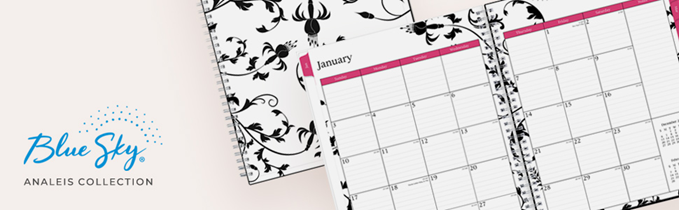 Get ahead with elegant florals and refined design! This stylish CYO (create your own) cover planner will keep you organized everywhere you go. Add in your favorite photos, sentiments, notes or memories to the clear cover pocket, and keep organized with dated weekly and monthly pages inside for easy scheduling. Fresh page designs add a touch of style and offer plenty of room for all of your important information. High quality white paper provides clean writing space for jotting down your appointments, to-dos and reminders. Durable coated tabbed dividers are long lasting and make accessing information a breeze. Use this dated planner to stay on track for appointments, and to jot down notes and ideas in one place. Premium quality covers and twin-wire binding. Mix and match with other Analeis Collection planning products from Blue Sky to organize your daily life. Blue Sky creates modern and sophisticated organizational planners and calendars to fit the scheduling needs of busy people - whether business professionals, college students, teachers, or anyone with appointments to make note of. Keep your life organized with our full line of products including desk pad calendars, wirebound tabbed weekly and monthly planners with contacts and notes pages to accommodate your scheduling needs, and laminated two-sided wall calendars, all in a variety of colors and patterns to suit your lifestyle and personality.