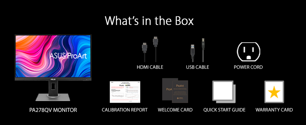 Bring out the beauty of your pictures with the 27” ASUS ProArt PA278QV. Enjoy true color right out-of-the-box with Calman Verified factory calibration and ASUS-exclusive ProArt Preset and ProArt Palette that provide numerous adjustable color parameters. View comfortably with the ergonomic stand and minimize eye fatigue with Eye Care Technology. Free 3-months Adobe Creative Cloud Subscription: Receive complimentary access with the purchase of this product (offer valid from 9/15/2021 to 9/15/2022).