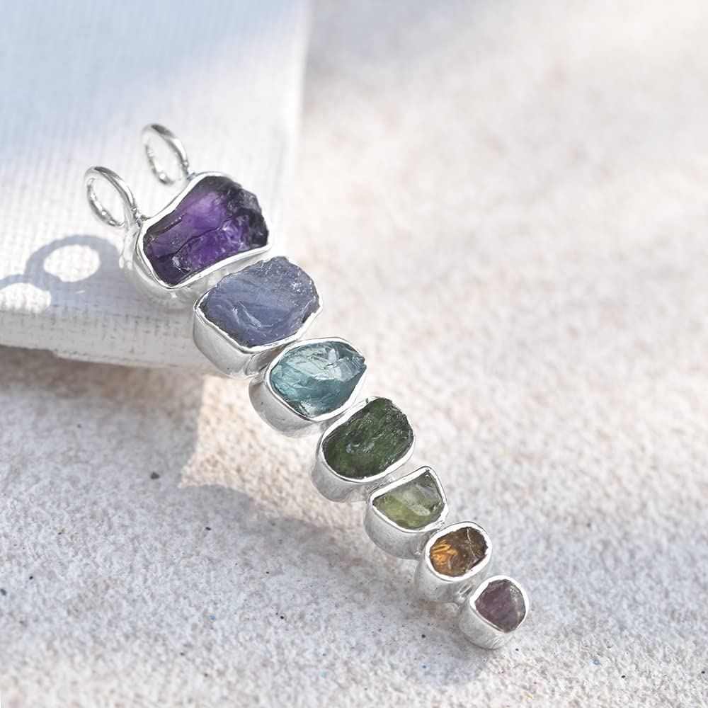 • Product Specifications: Gemstone - Raw Amethyst - Not Treated, Raw Tanzanite - Heated, Raw Neon Apatite - Not Treated, Raw Peridot - Not Treated, Raw Chrome Diaopside - Not Treated, Raw Citrine - Heated, Raw Tourmaline - Not Treated, Metal - Solid 925 Sterling Silver, Stone Size - 5 x 10, 5 x 9, 4 x 8, 4 x 7, 4 x 6, 3 x 5, 3 x 4 mm, Product Weight - 6.7 gm, Length - 1.9 inch