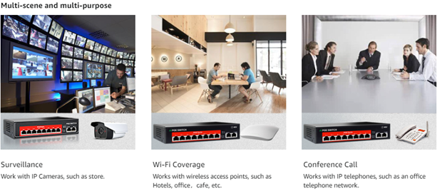 【Active poe switch with 802.3af/at compliant】STEAMEMO poe switches support poe devices and non-poe devices, But when connecting passive poe device or non-poe device,the switch can only transmit data and cannot power your device,so the connected device needs to be separately powered. Or you can use it with active poe splitter.