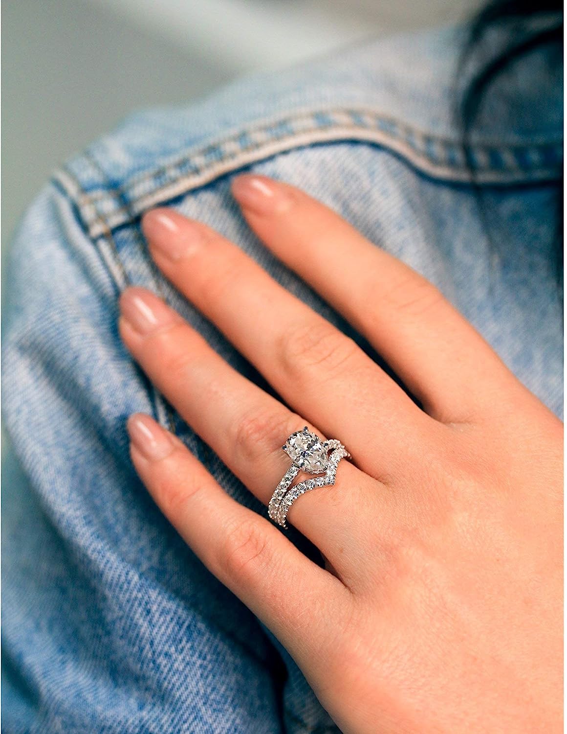 Siyaa Gems 4.50 CT Pear Cut Colorless Moissanite Engagement Ring Wedding Band Gold Silver Eternity Solitaire Ring Halo Ring Vintage Antique Anniversary Promise Gift Her, Designer Bridal Ring