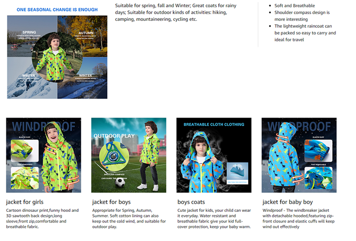 Brightly colored raincoat for boys,perfect for outdoor sports, school, camping, hiking,riding, climbing,daily wear.