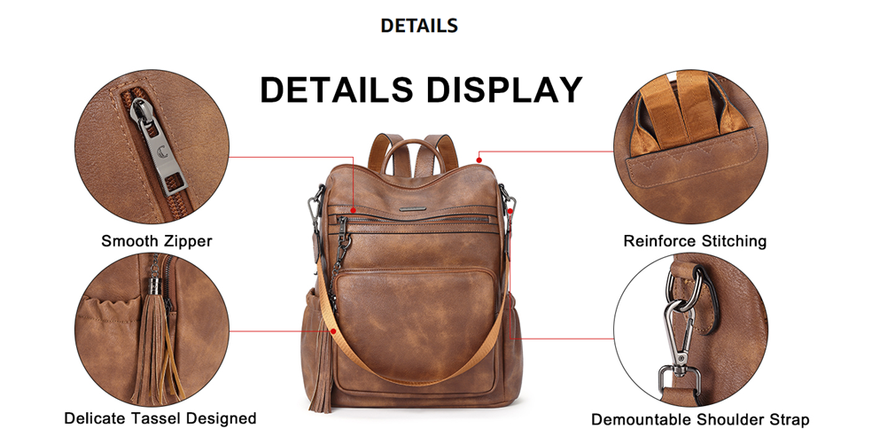 High-end Material: Made of high-quality PU leather material with reinforced stitching, gun-tone hardware, soft fabric lining, delicate tassel designed for fashion appearance and adjustable canvas shoulder straps for convenience.