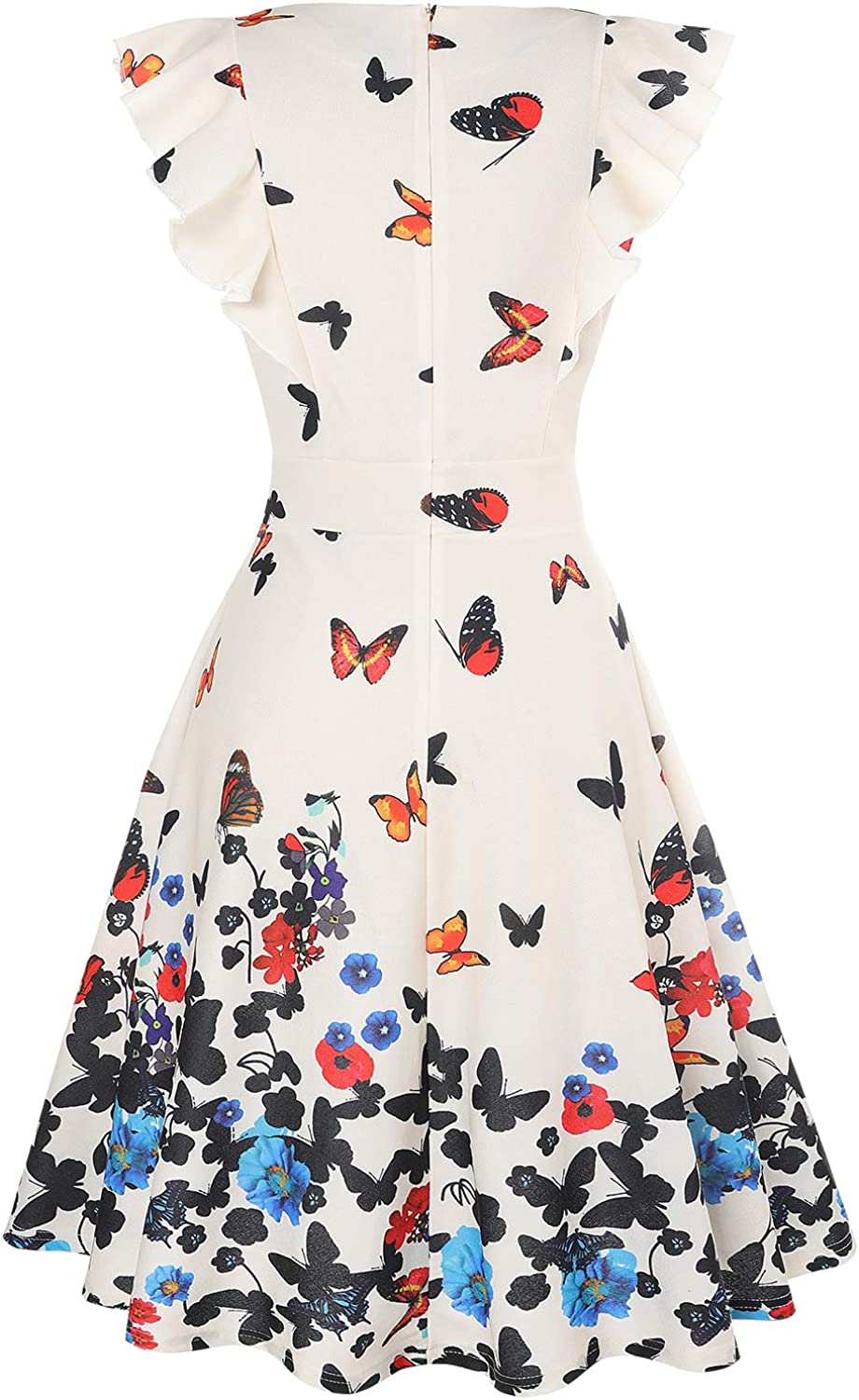 FLATTERING RUFFLE SLEEVES : The sexy flutter sleeves add some pizzazz and not tight around your arms. Plus there is extra fabric that covers the space between your arm and the ruffle, this makes the dress very classy.¡¾WARM TIPS¡¿This size of vintage dress is smaller, to ensure your experience, pls order one size up.Thank you!