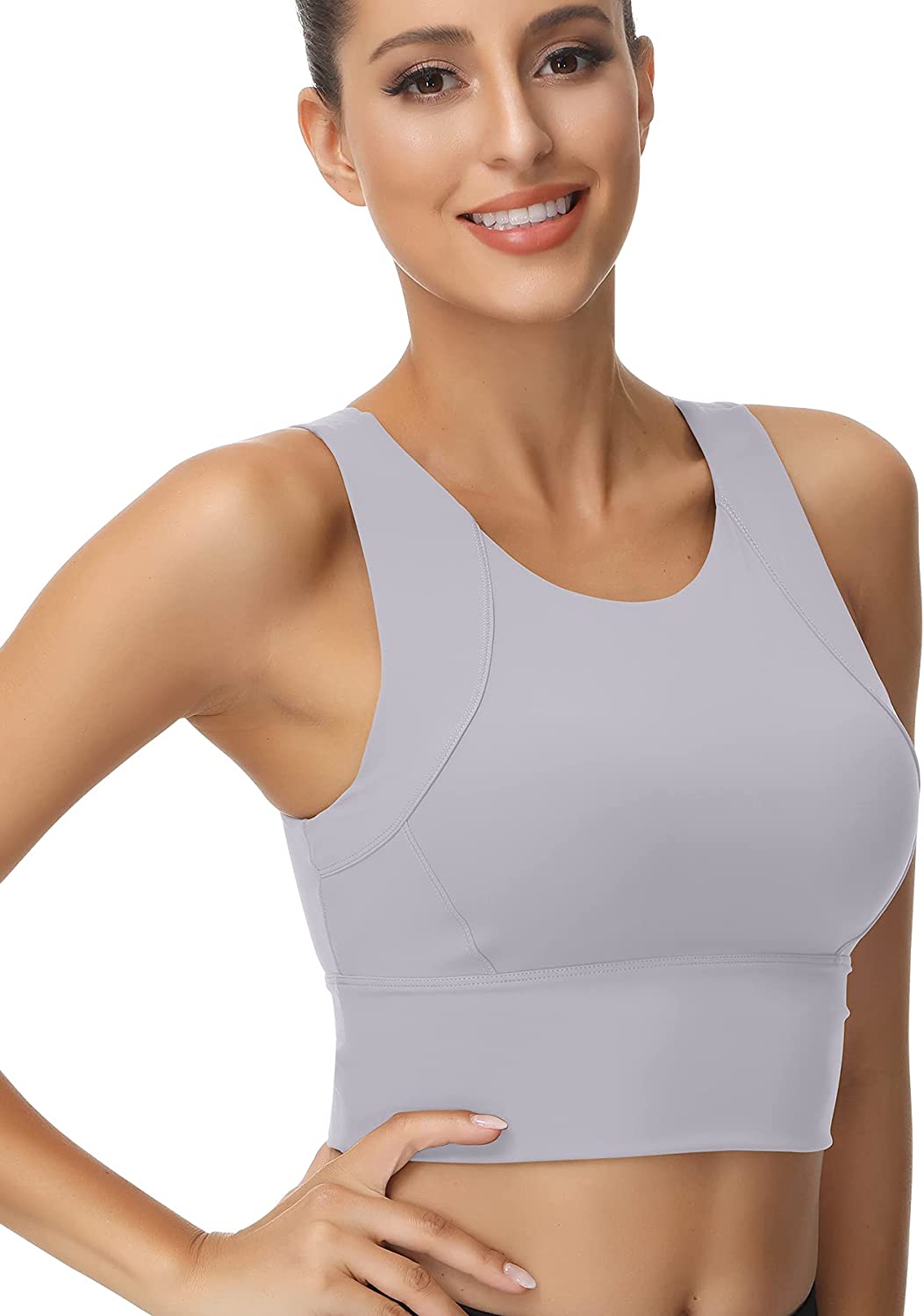 - Medium Support Sports Bras: Made of high performance nylon-spandex fabric, The high necked longline sports bras are stretch, super soft and quick dry, keeping you cool and comfortable all the time while provide you with remarkable comfort.