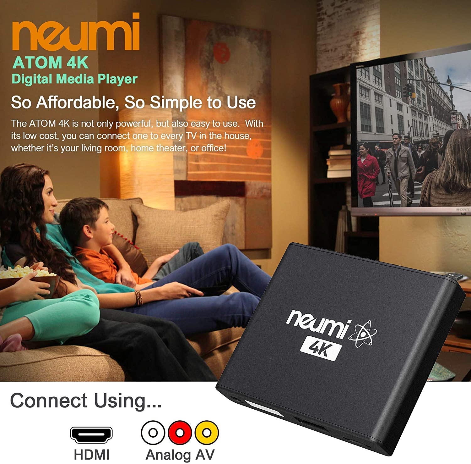 NEUMI Atom 4K Ultra-HD Digital Media Player for USB Drives and SD Cards - Plays 4K/UHD 60fps Videos, HEVC/H.265, HDMI and Analog AV, Automatic Playback and Looping Capability