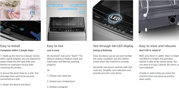 - Extremely Energy Saving: - This washing machine equips with high quality and durable motor, providing stable power. Saving as much as 84% energy consumption comparing to similar models, our washing machine is able to save money for your household.