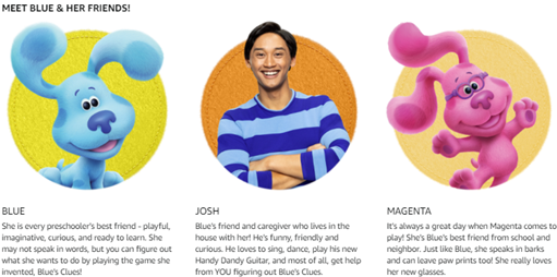 Step by step and clue by clue – it’s Blue’s Clues & You! Kids will love cuddling with Blue and Magenta from Nickelodeon’s hit preschool show, Blue’s Clues & You! Each adorable small plush puppy comes in the perfect size for kids to take on all their play dates. Blue and Magenta are made of super soft fabrics and looks just like they do on the show, making them the perfect gift for any clue-finding kid. Assortment includes Blue and Magenta. Bring home Blue and the rest of the Blue’s Clues & You! toys to help your little clue-finder use their mind, take a step at a time, and do anything that they want to do. Ages 3+