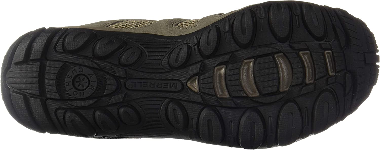 - Molded nylon arch shank Merrell Air Cushion in the heel absorbs shock and adds stability M Select GRIP outsole tunes each outsole with durable traction that grips when and where you need it 4mm Lug Depth Weight: 1lb 1oz / 752g