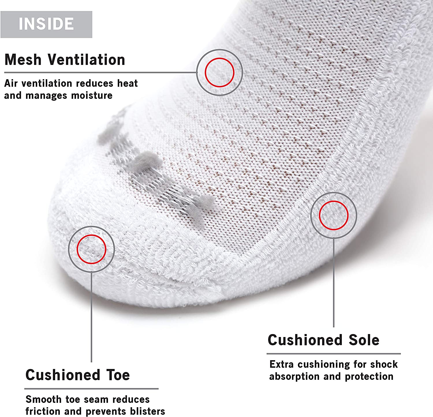 Moisture Control and Mesh Ventilation reduce heat and keeps your feet cool and odor free