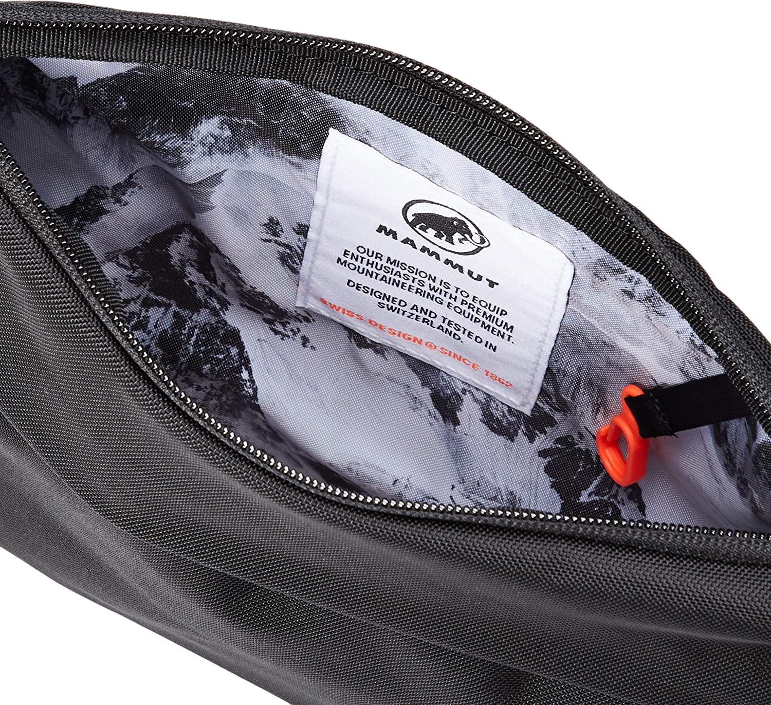 Xeron Briefcase: the practical shoulder bag for everyday use with a traditional MAMMUT theme. A MAMMUT mini biner, a mountain printed lining and Safety Orange color elements create a unique tribute, making the Xeron bag exceptional.