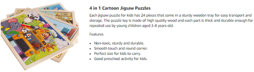 ❤ CHALLENGING GAME: There are 24 PCs of wooden blocks in each jigsaw puzzle, so it is a little challenging for toddlers to complete all the puzzles in the beginning. Children can piece the puzzles with the help of the parents. As they gain enough experience, they are fully capable of finishing it on their own through which their brainpower grows and imaginations get strengthened.
