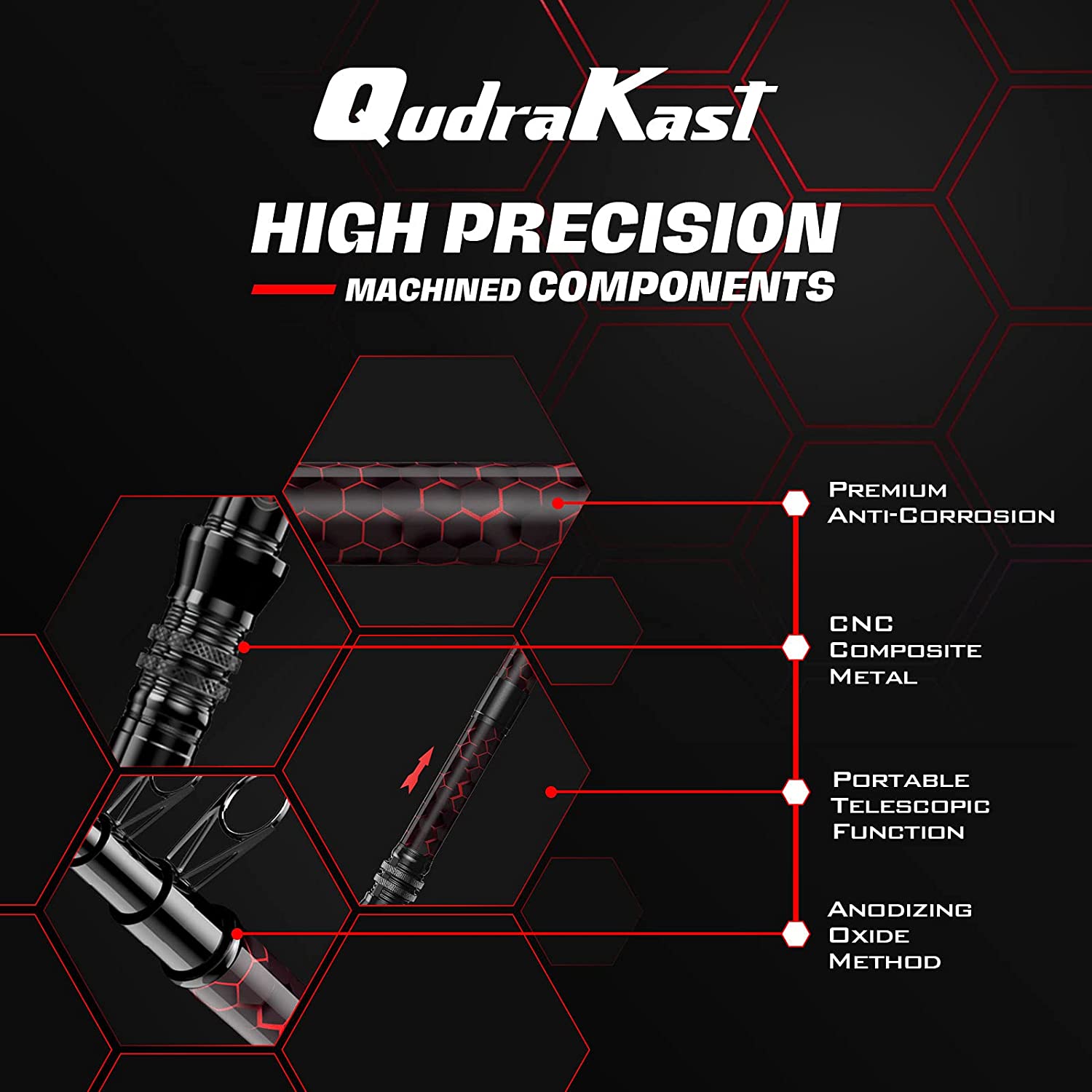 ?【Travel Fishing Rod】Telescopic rods are portable, convenient, and easy-to-carry. Travel anywhere with your QUDRAKAST travel rod. You’ll love our travel fishing rod. Better yet, it fits easily into your car, truck, RV or over your shoulder to take on a bike, ATV and more. Keep our fishing pole in your boat, camper, cabin, vehicle, or anywhere else you might be when the opportunity to go fishing pops up!