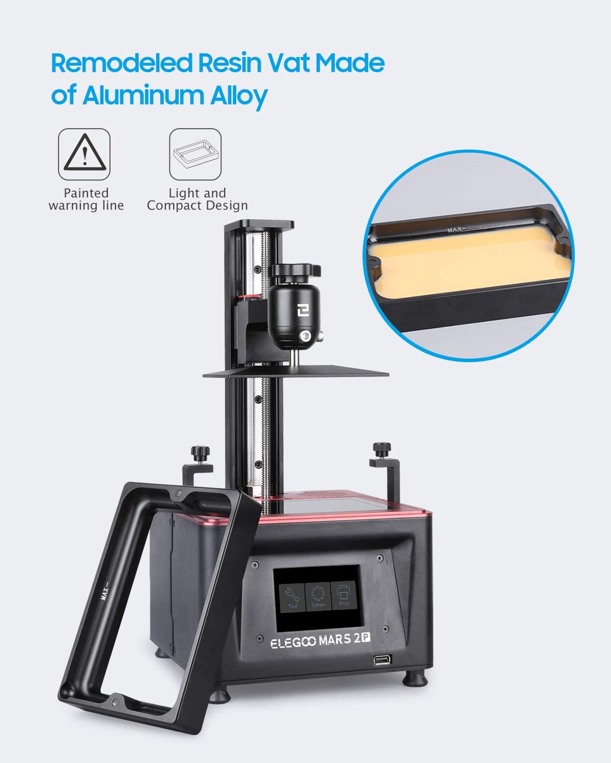 ELEGOO Resin 3D Printer Mars 2 Pro Mono MSLA 3D Printer UV Photocuring LCD Resin 3D Printer with 6.08 inch 2K Monochrome LCD, Printing Size 129 x 80 x 160 mm³ / 5.1 x 3.1 x 6.3 in³