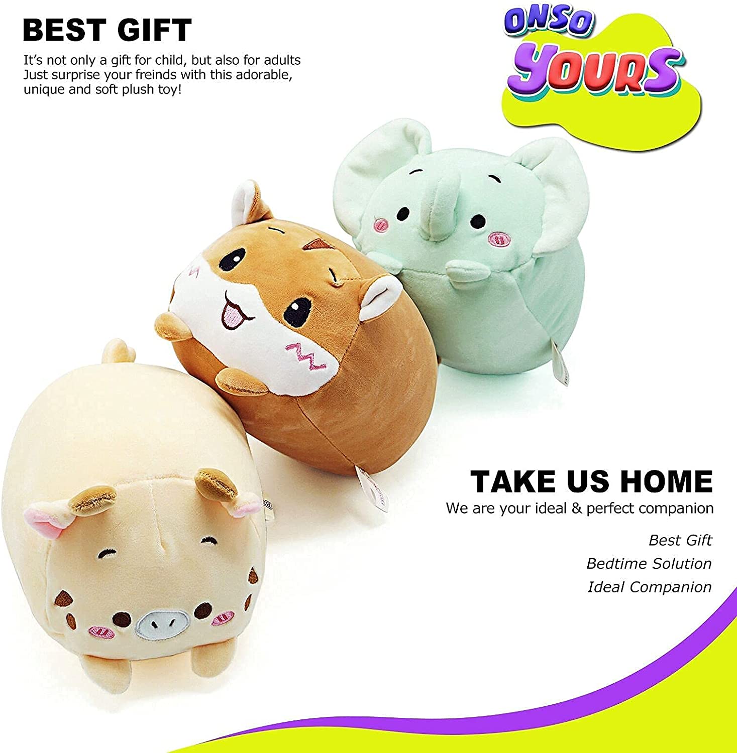 Onsoyours Plush Toys Set, 3Pcs Stuffed Animals with Elephant, Deer and Hamster, Creative Decoration Cuddly Plush Pillows 9" for Kids Girls Boys (Elephant/Deer/Hamster)