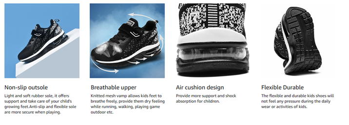 • Air cushion design: Kids running shoes adopt an air cushion design to provide support and cushioning for the feet.