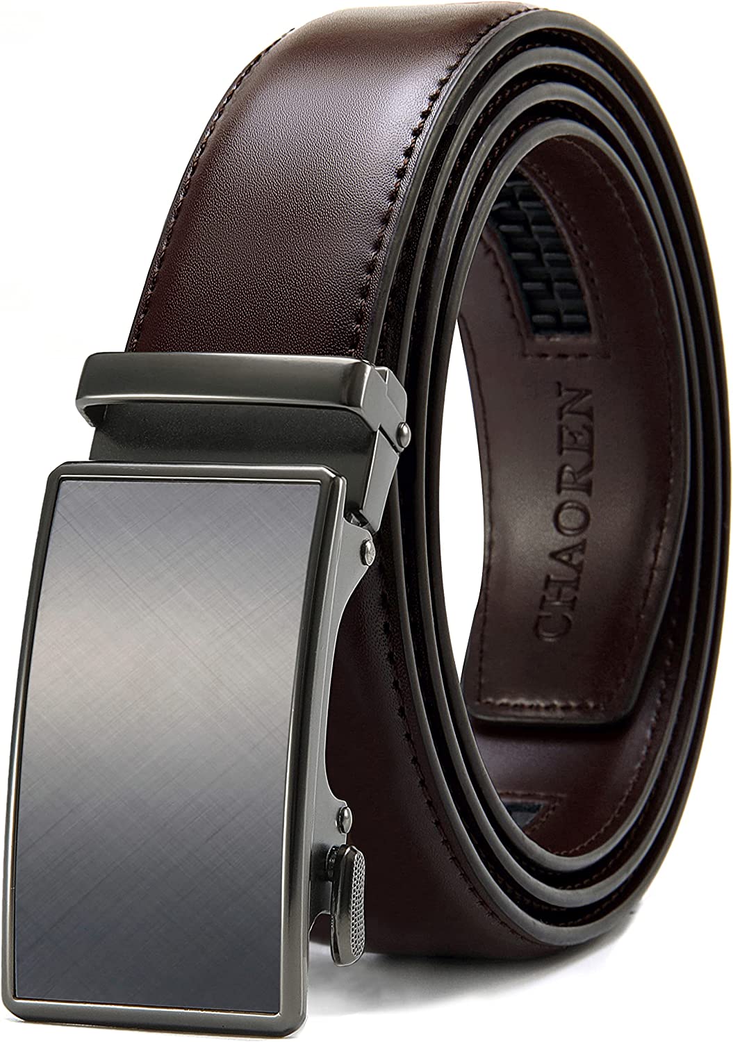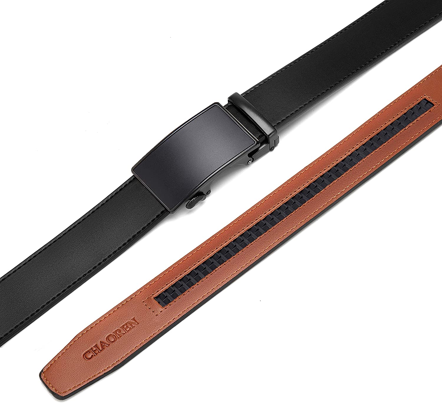 EASY TO USE - Slide the leather belts for men into the buckle, and click on the buckle to lock it automatically. Gently push the lever on the side of the automatic buckle, and pull the casual belt to release. Simple, smooth, and sleek!