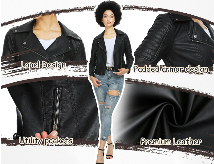 • [Perfect Gift ] It's a great Christmas, birthday, anniversary, Thanksgiving gift. Every woman loves beautiful and high-quality motorcycle leather jacket, you can choose "Add gift options" to give her a small surprise occasions