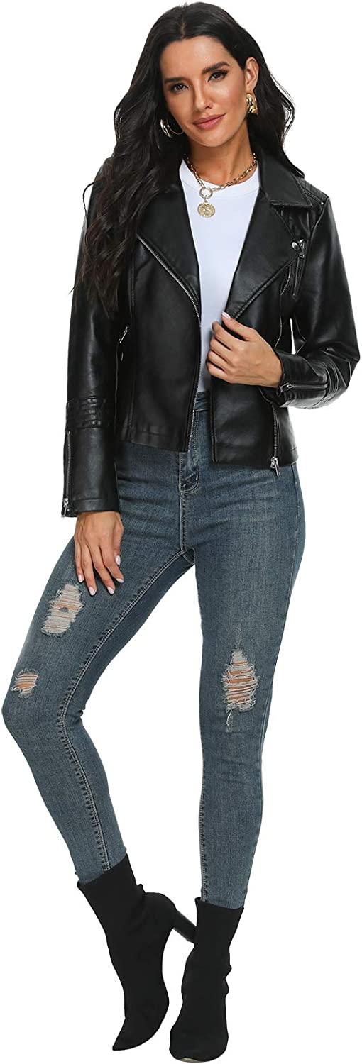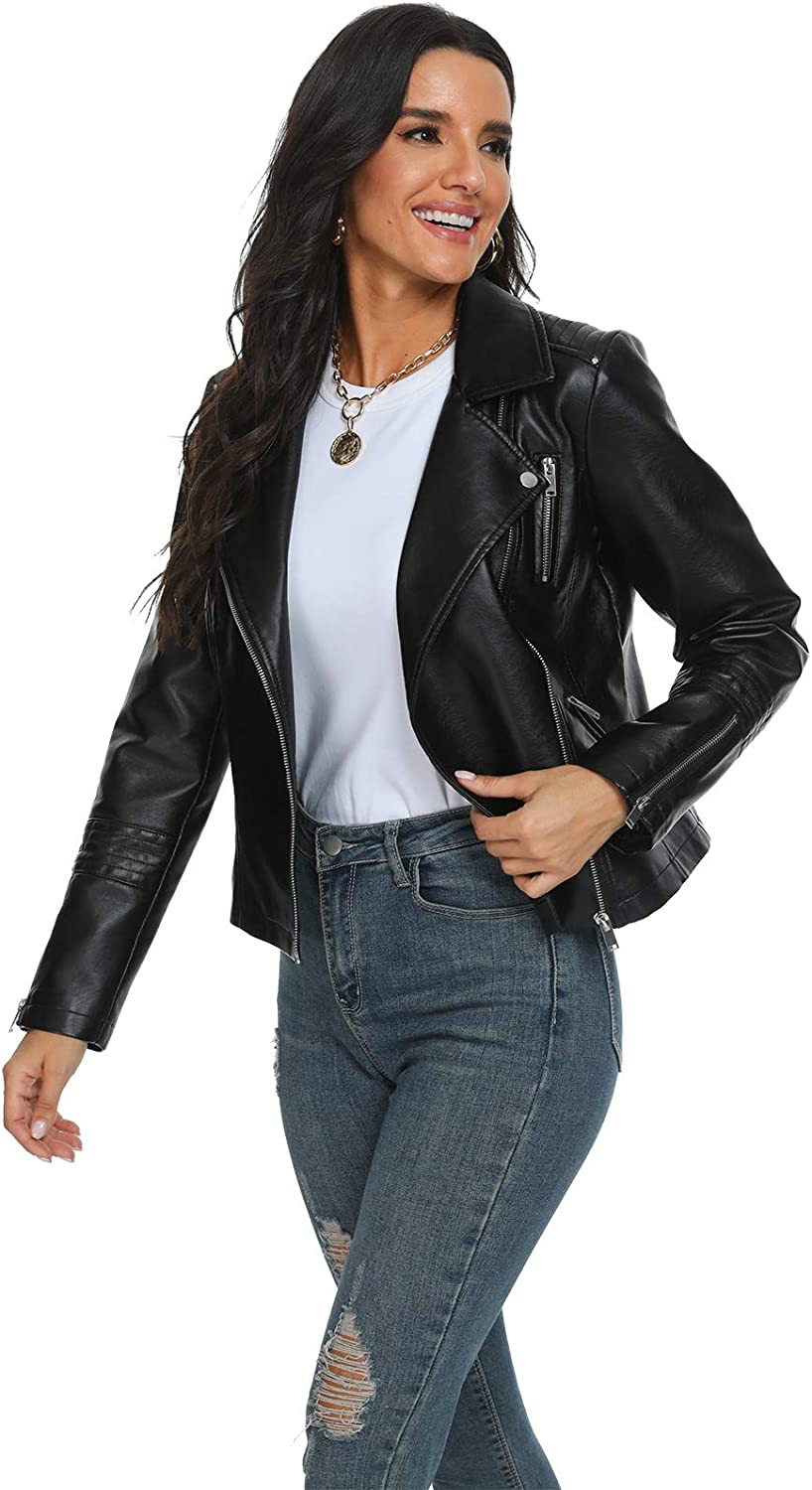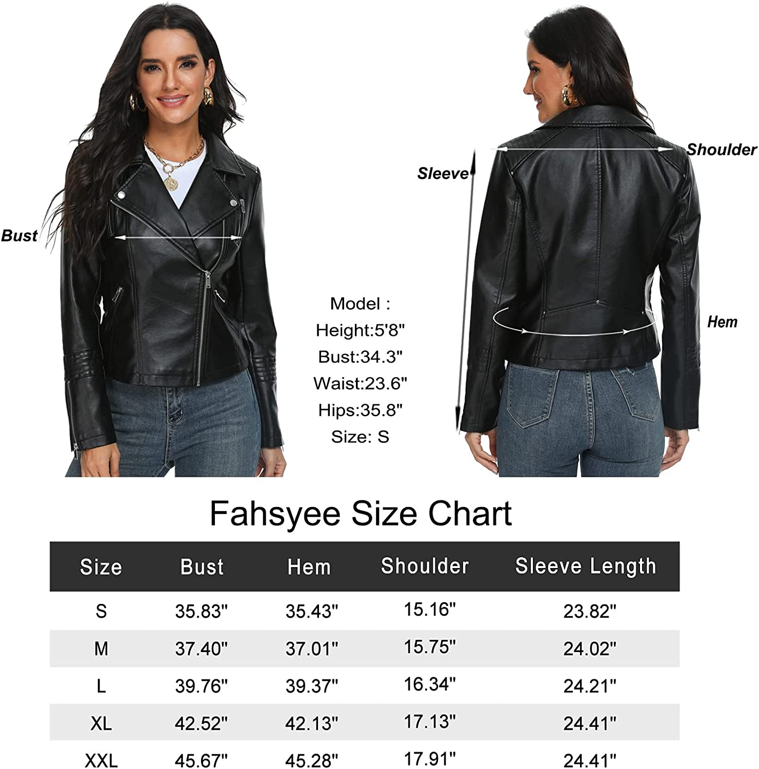 Fahsyee Women's Leather Jackets, Faux Motorcycle Plus Size Moto Biker Coat Short Lightweight Vegan Pleather Fashion