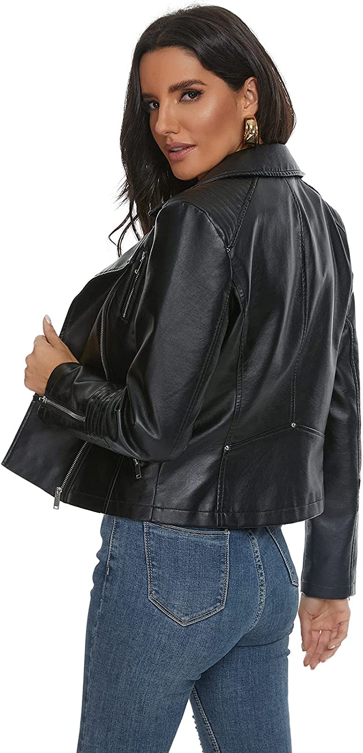 • [ Soft faux leather Material and Vintage Designs ] We use strenchy and light leather material to produce each piece of bomber leather jacket, so it has no unpleasant smell. This cropped motor leather coat is designed with utility pockets, durable zippers and long sleeves, You can feel the leather texture, suitable for ladies and petite teen girls