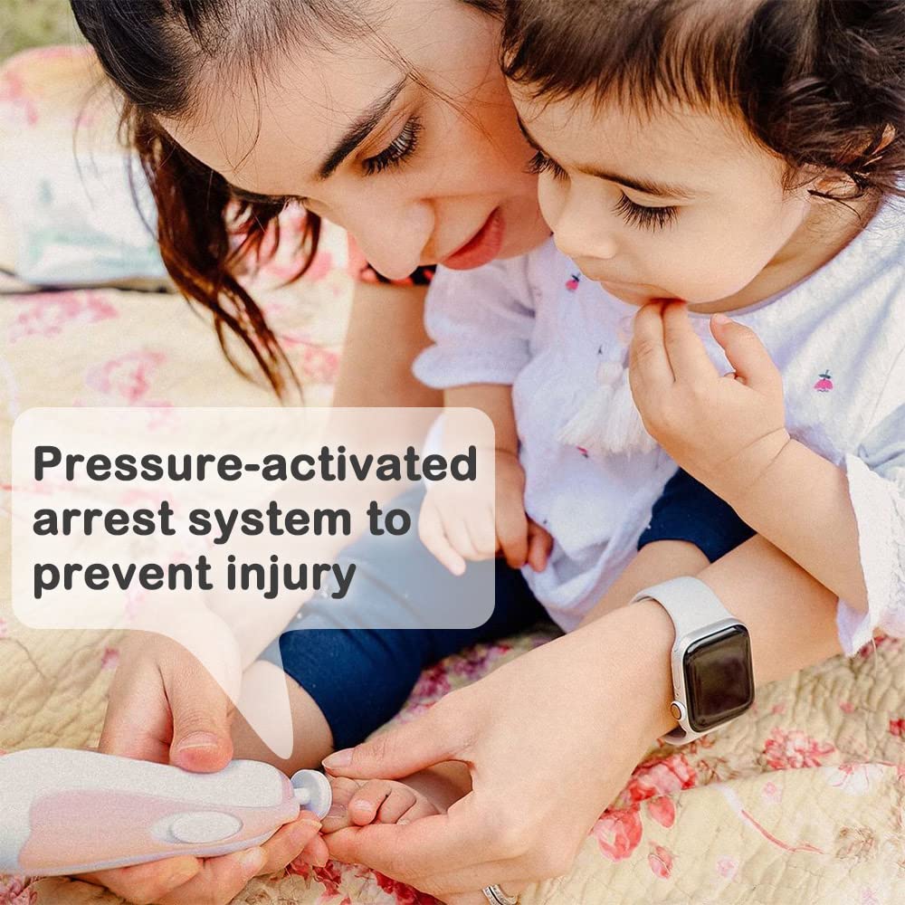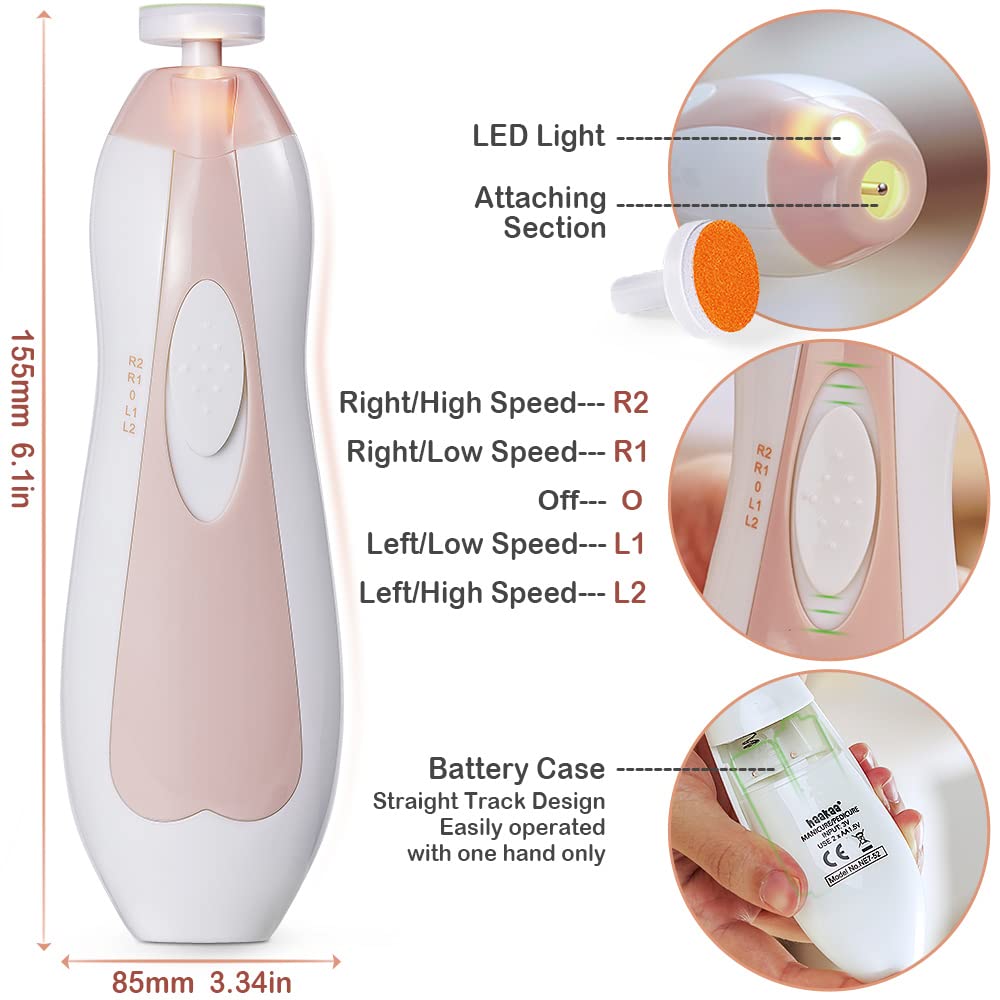 haakaa Baby Nail Trimmer Electric Safe Baby Nail Clippers Baby Nail File Kit Manicure Set, Trim Polish Grooming kit for Newborn Toddler or Adults Toes Fingernails, 6 Grinding Heads and LED Light, Pink