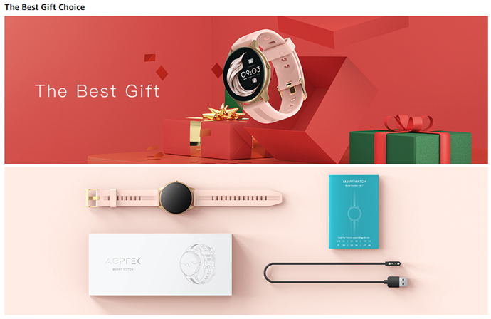 | Color | Rose gold case with pink band |