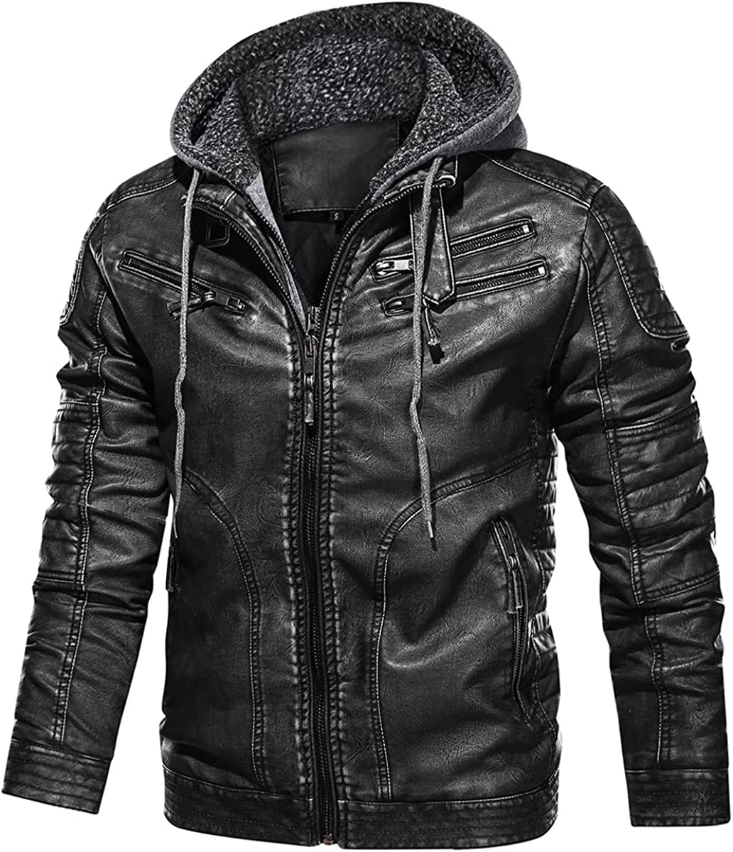 Removable knitted hood with placket and out zip closure placket provide great wind resistant, and can be worn as a stand collar motorcycle jacket
