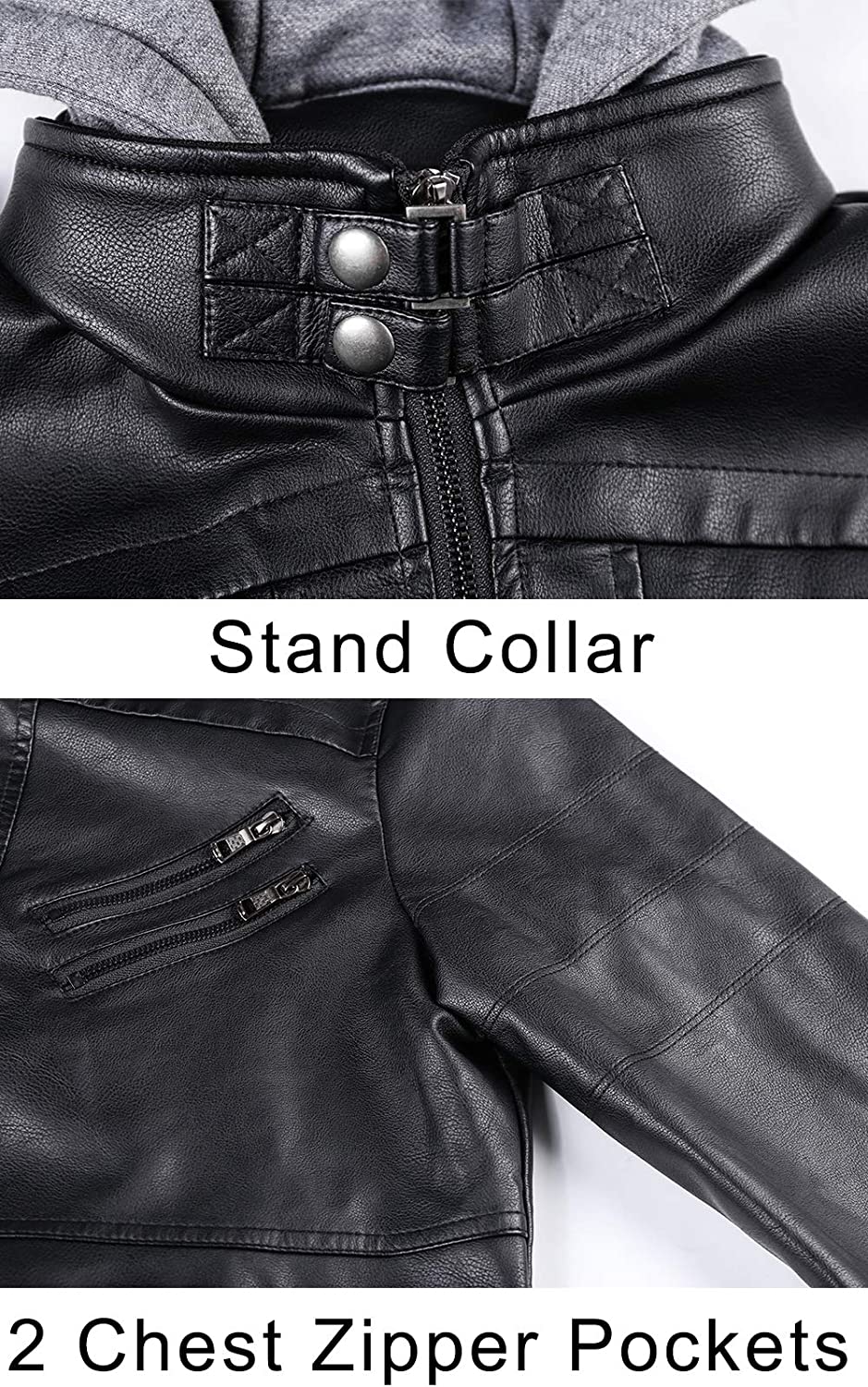 MAGCOMSEN Men's Stand Collar PU Faux Leather Jacket 6 Pockets Motorcycle Bomber Jacket with a Removable Hood