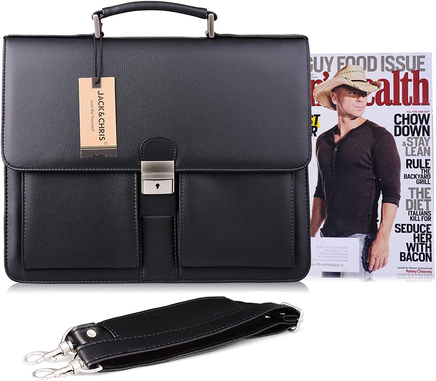 - [Classical Design] The classical look of this PU leather briefcase with lock will never out of style, it is a best gift for your families, friends, neighbors, coworkers etc. It could use a professional leather briefcase, business work men's briefcase, leather messenger bag,Satchel Bag