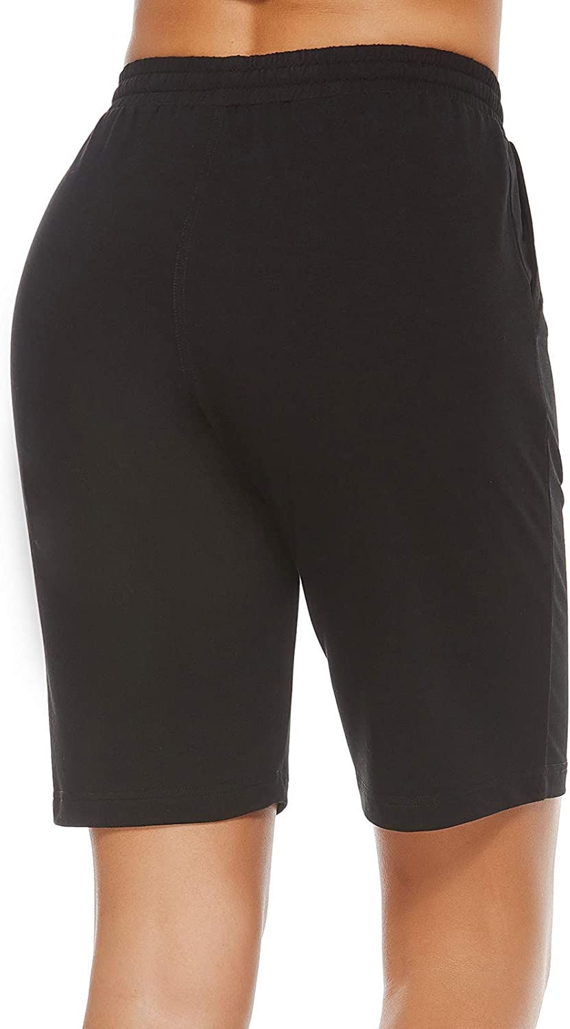 Material: This bermuda shorts made of 73% cotton, 20% polyester, 7% spandex. Cotton material give you comfy and breathable feeling. Spandex makes this sweat shorts stretchy, so you won't feel uncomfortable when you do any movement in this shortses, lounging around the house, etc.