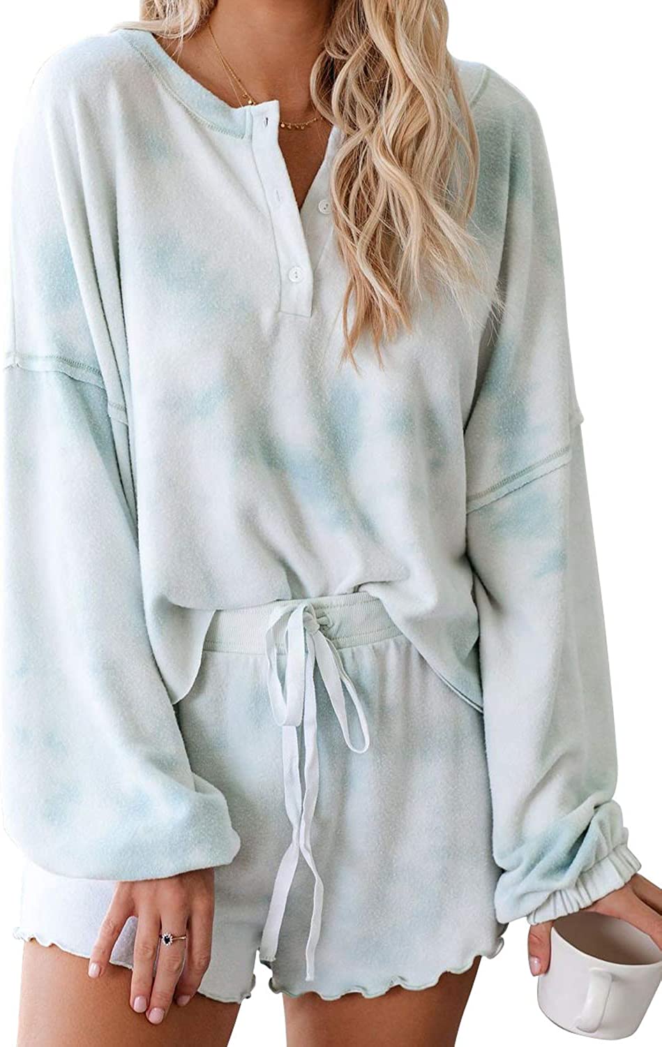 Stay warm and comfy pj set nightwear sleepwear for women featuring a long sleeve with elastic cuffs, tee top and shorts pajamas set