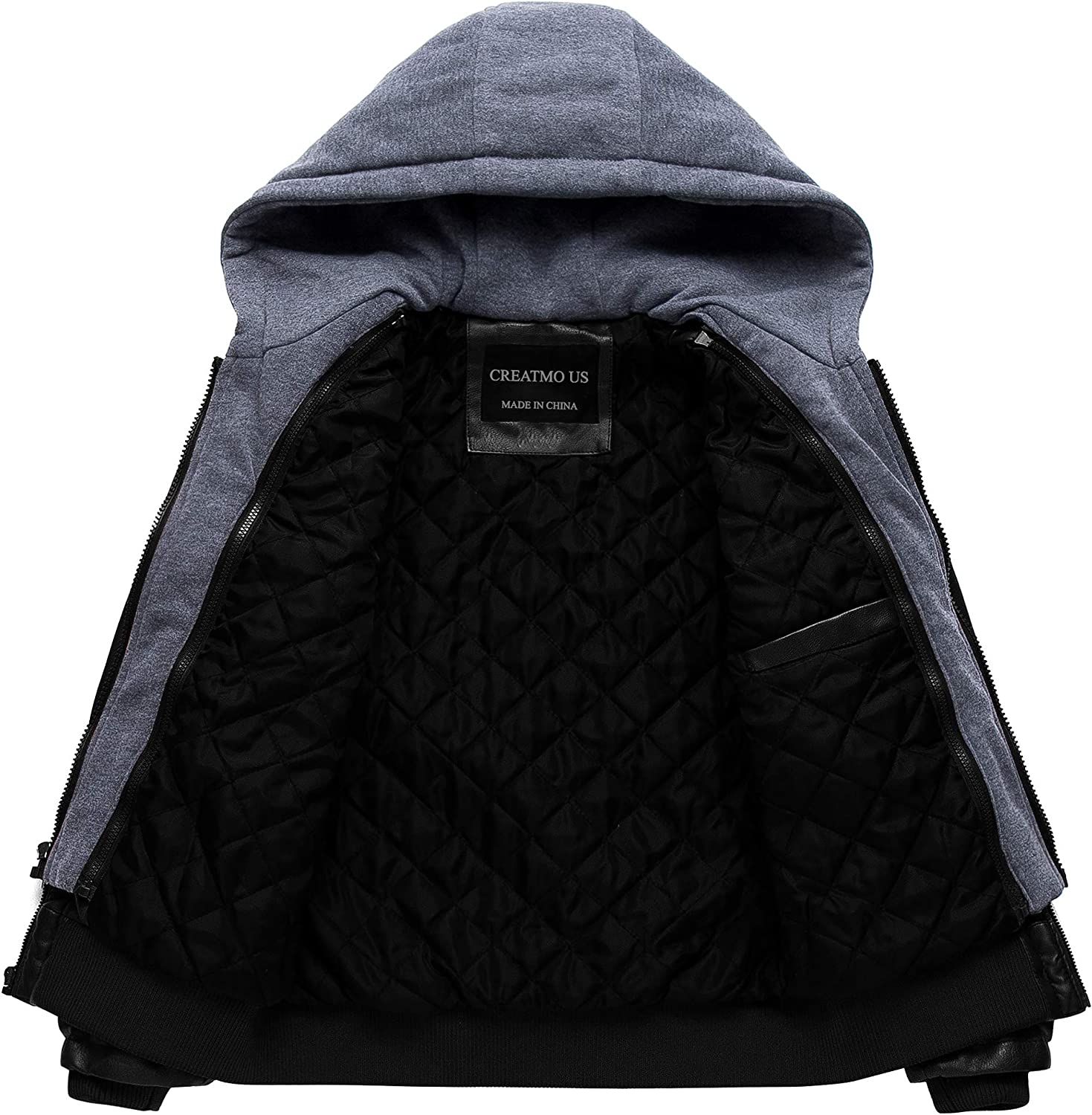▶ Windproof details--Leather hoodie is consist of inside removable knitted hood with placket and out zip closure placket provide great wind resistant.Thick lining, excellent seam,rib collar, cuffs and hem are comfortable as well as warm to against the skin and keep wind out.