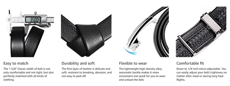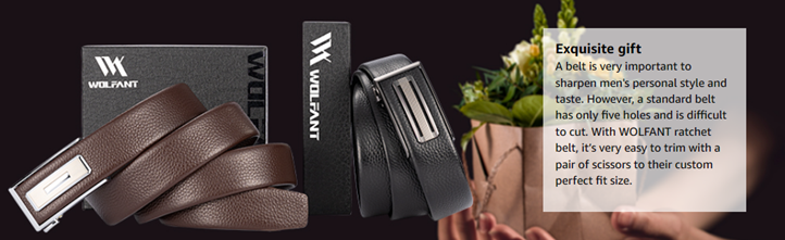 • [Exact Fit]: WOLFANT's No Holes Ratchet Dress Belt provides 38 micro adjustments for a superb Comfortable Fit. You can easily trim the belt to the ideal size so that you can control the length of the belt tail in order to get tailored appearance.