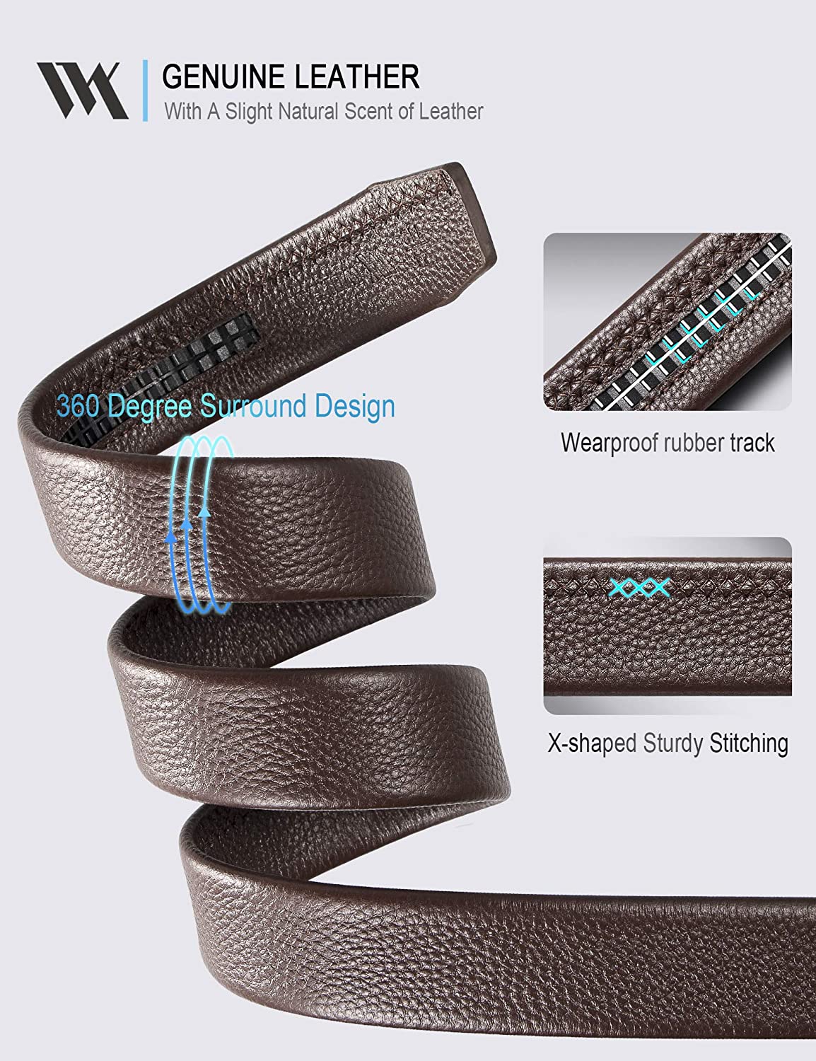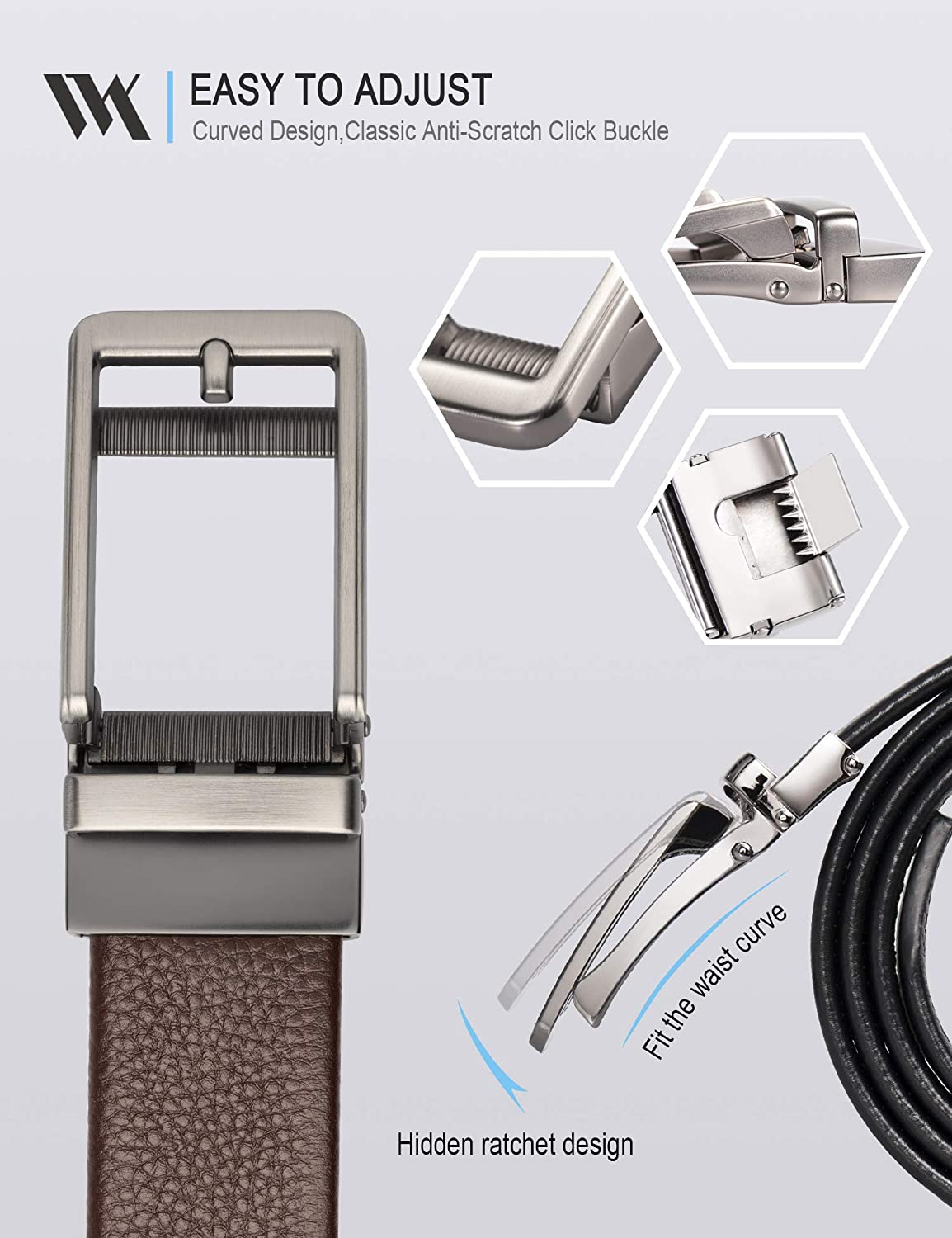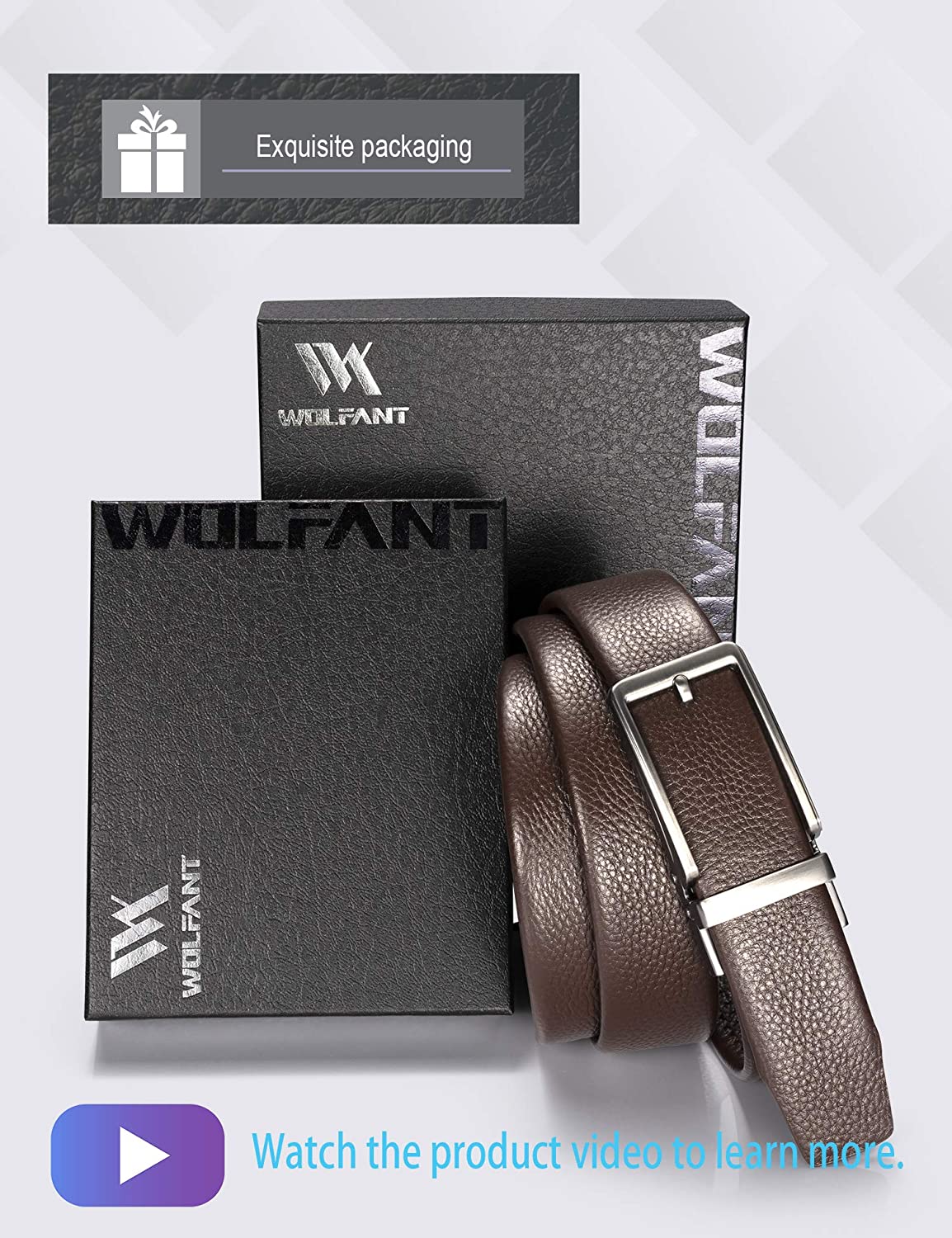 WOLFANT Ratchet Belt for Men,1 3/8" Genuine Leather Dress Belt with Sliding Buckle