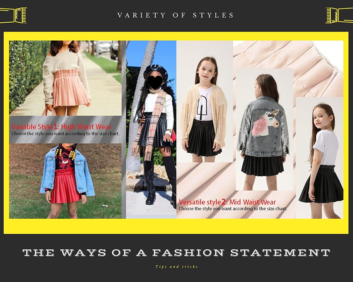 MATERIAL: The pleated skirt is made of high-quality PU leather, very comfy on and stylish. Pleating is adorable. The whole has the shape and texture. It makes your princess look very fashionable and charming.
