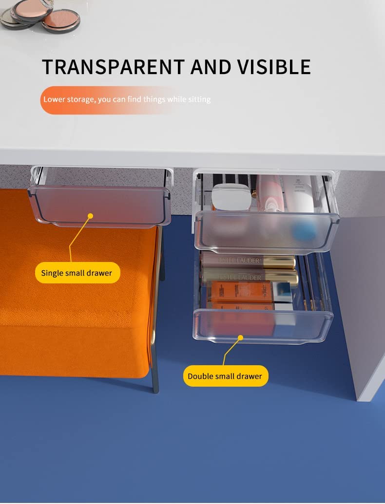 【Self Adhesive & Easy to Install】With four strong-power self-adhesive tapes, this under desk drawer organizer is easy to mount to the clean surface tightly and will not drop-off. Screws are also included if the tapes do not work.You can choose a suitable location, choose a smooth panel, and paste our drawers.Please hot the tape with a hair dryer first or use some degumming agent and rip it off if you want to remove the drawer.