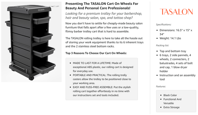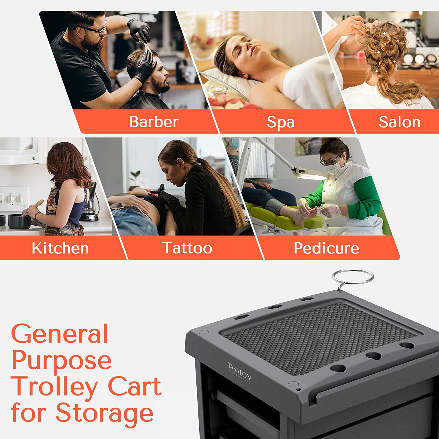 ✅ ORGANIZE ALL YOUR BEAUTY SALON ESSENTIALS: As a professional, you'll need a mobile beauty trolley with plenty of space as your best assistant. That's why the TASALON rolling cart features 6 easy pull-out trays with two-way travel on both sides for efficiency.