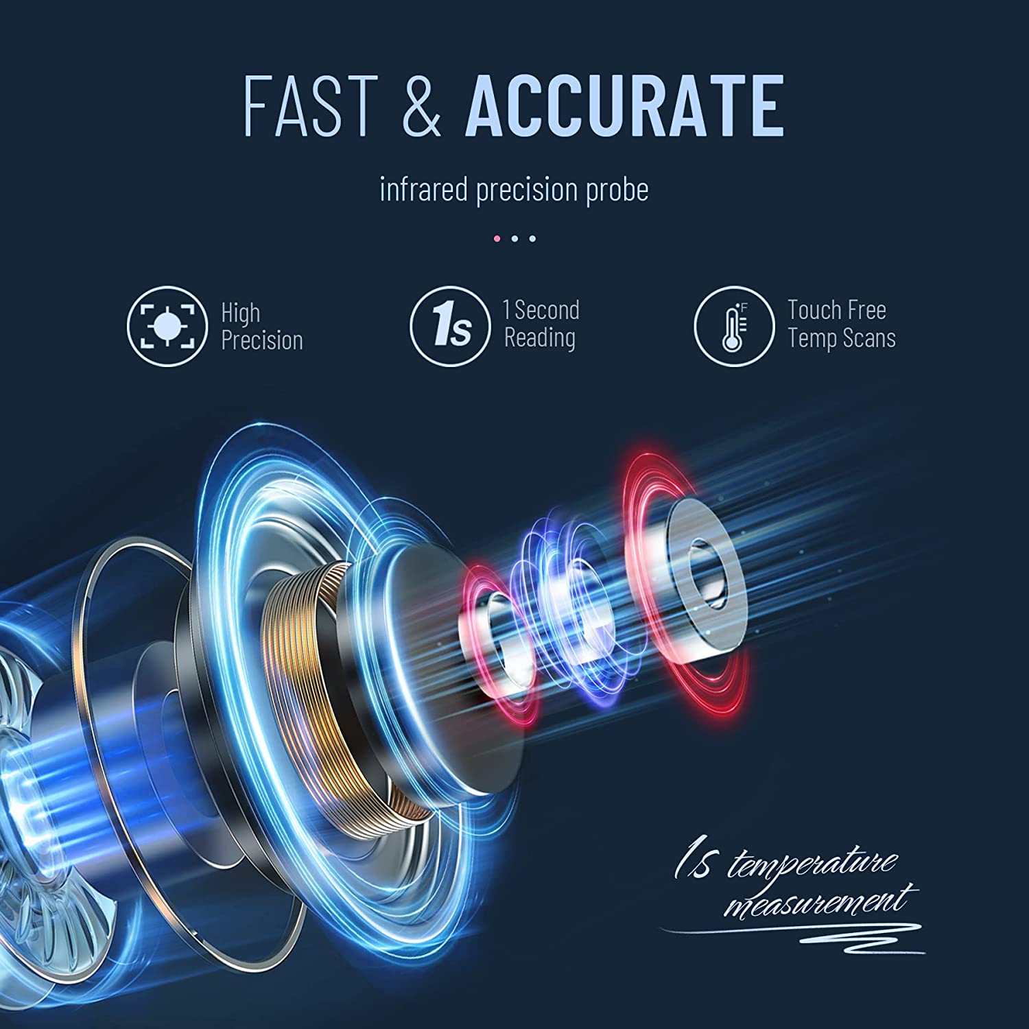 No-Contact Thermometer: This touchless thermometer provides contactless accurate temperature reading that helps you avoid cross infections. No need to clean the thermometer after every use!
