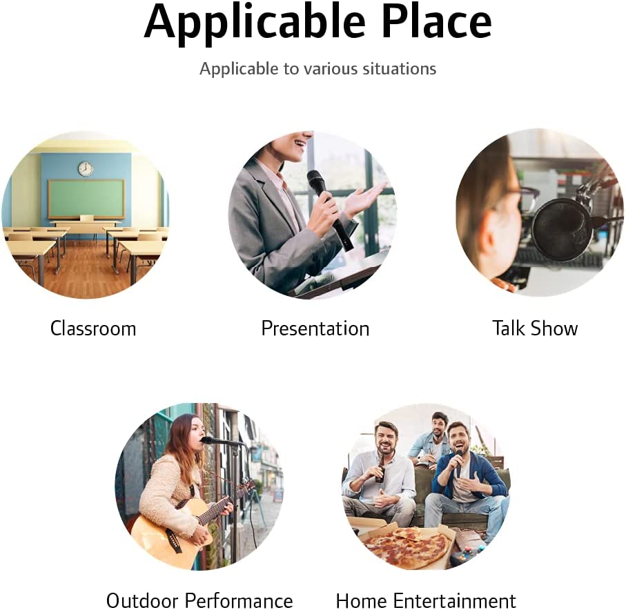 ?【 High Sound Quality 】Super-Cardioid pickup pattern captures the main source while minimizing background noise. Large diaphragm can achieve clear high gain and rich bass with no feedback. Perfect for live vocal, karaoke, speech, singing.
