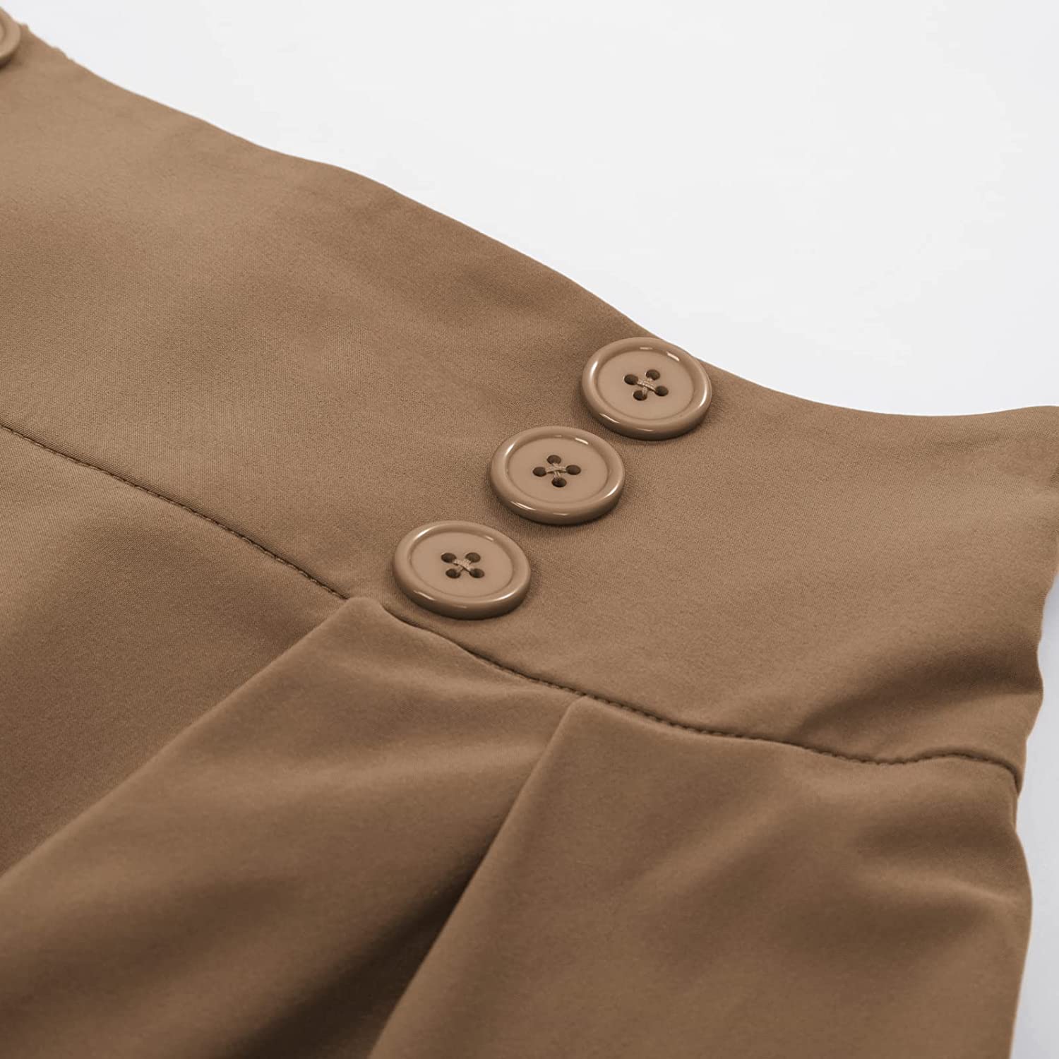 SweatyRocks Women's Casual Wide Leg High Waisted Button Down Straight Long Trousers Pants