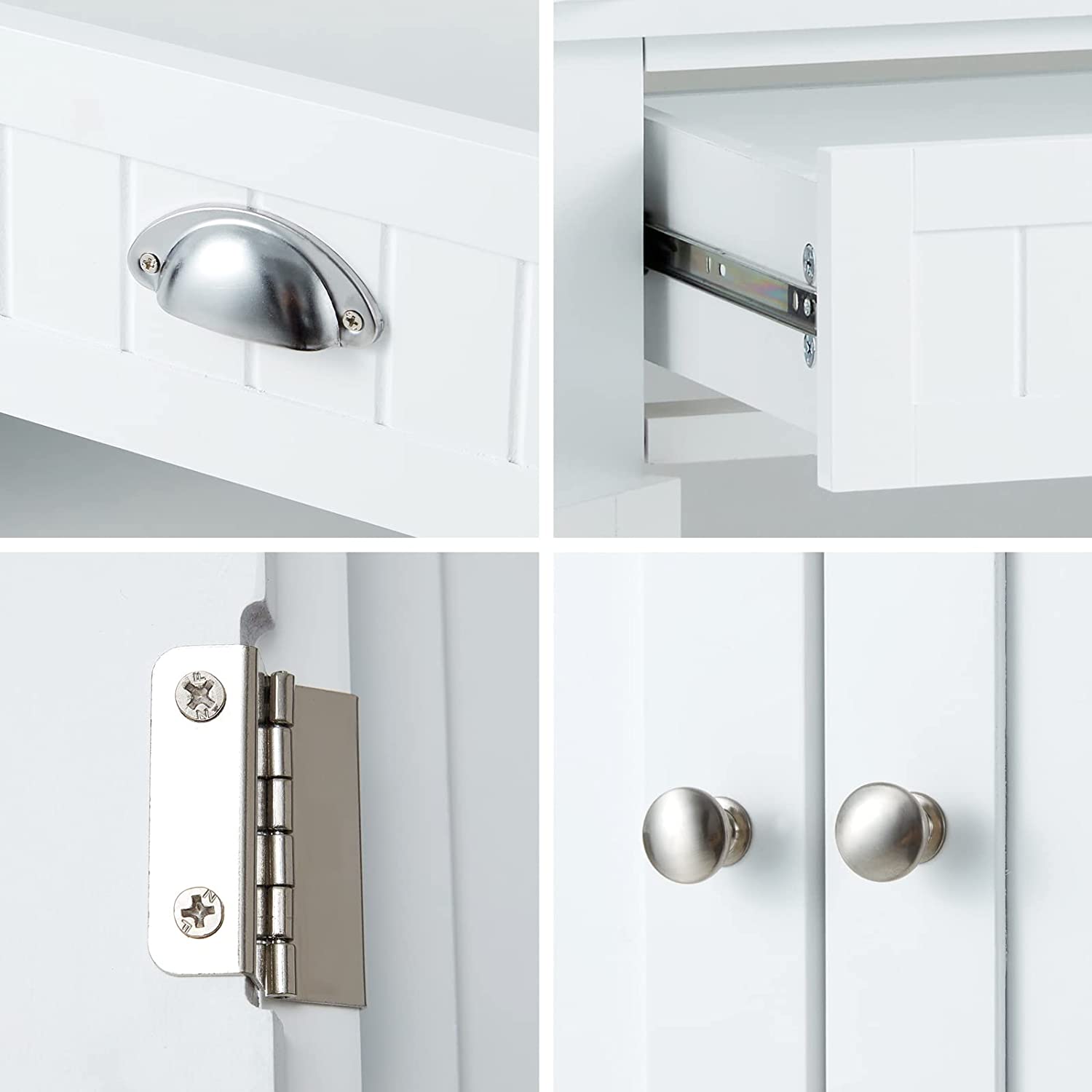 【UPDATED PERFORMANCE】Constructed from high-quality MDF boards, fully optimized in structure and material in 2022, the kitchen cabinet frame is durable and strong for long service. The MDF board is moisture-proof scratch-resistant, and very easy to clean. This kitchen cabinet is also equipped with a tilting preventing device to prevent tilting and falling down.