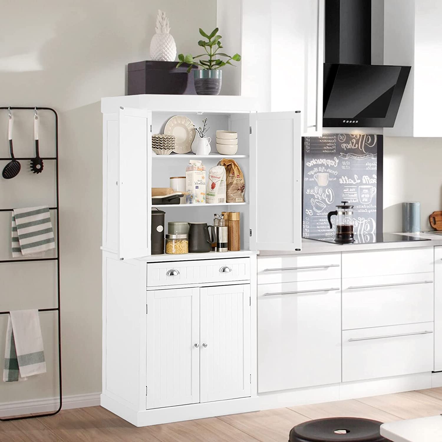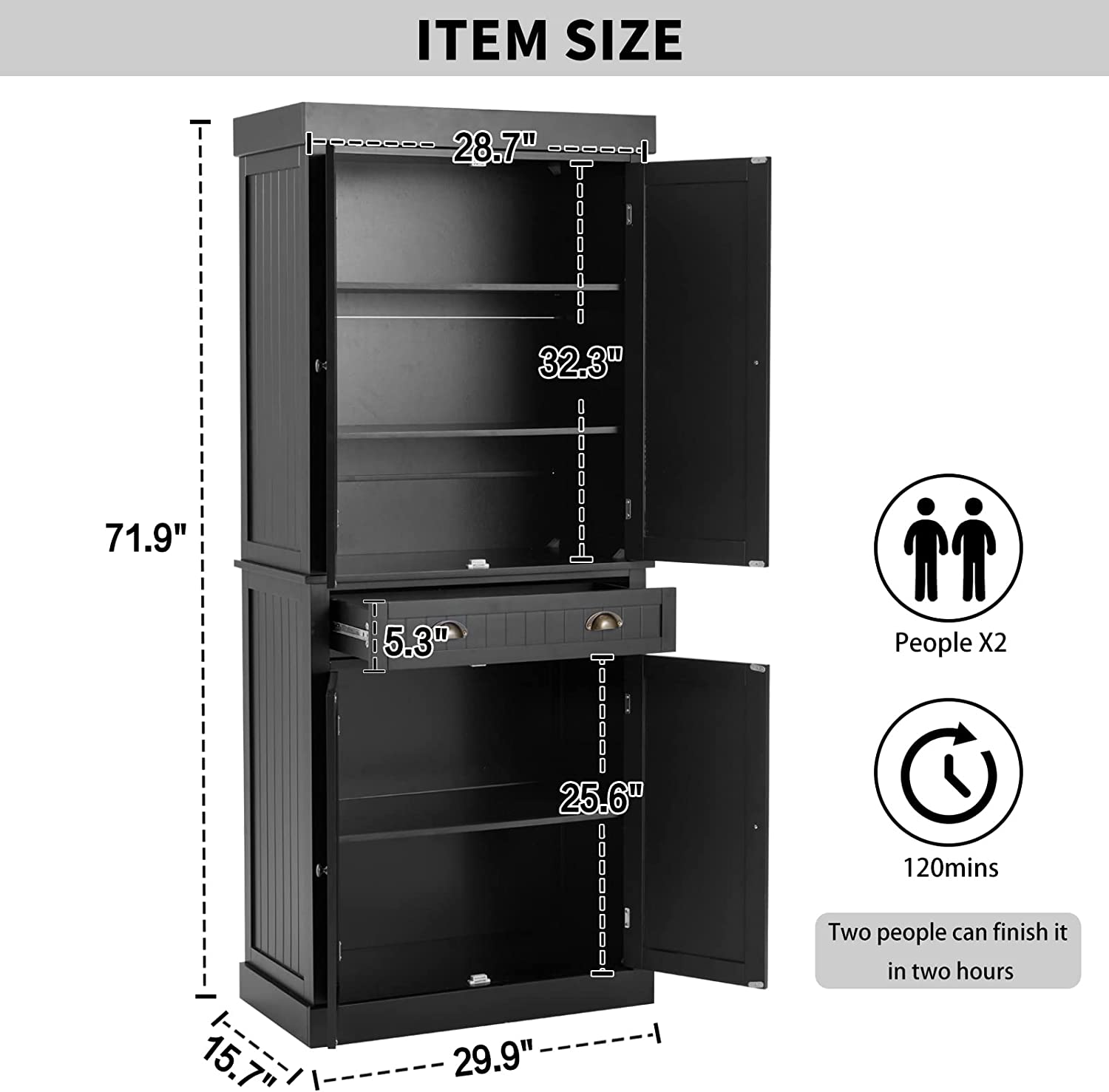 YOLENY Kitchen Pantry, 72” Freestanding Storage Cabinets with Doors and Shelves, Elegant Colonial Design Cabinet Cupboard with 3 Adjustable Shelves and 1 Storage Drawer,Black