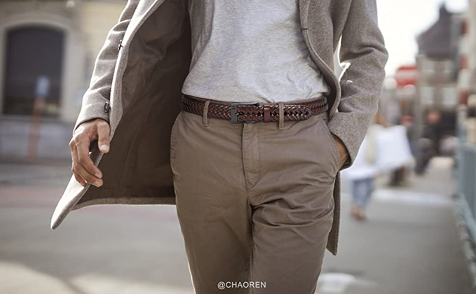 CHAOREN Braided Belt for Men - Mens Belt Leather 1 1/8" for Casual Jeans - Always at Your Comfortable Spot