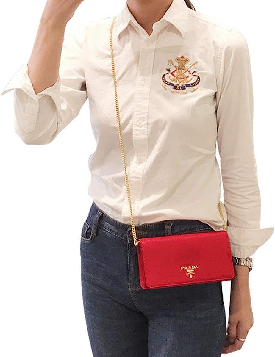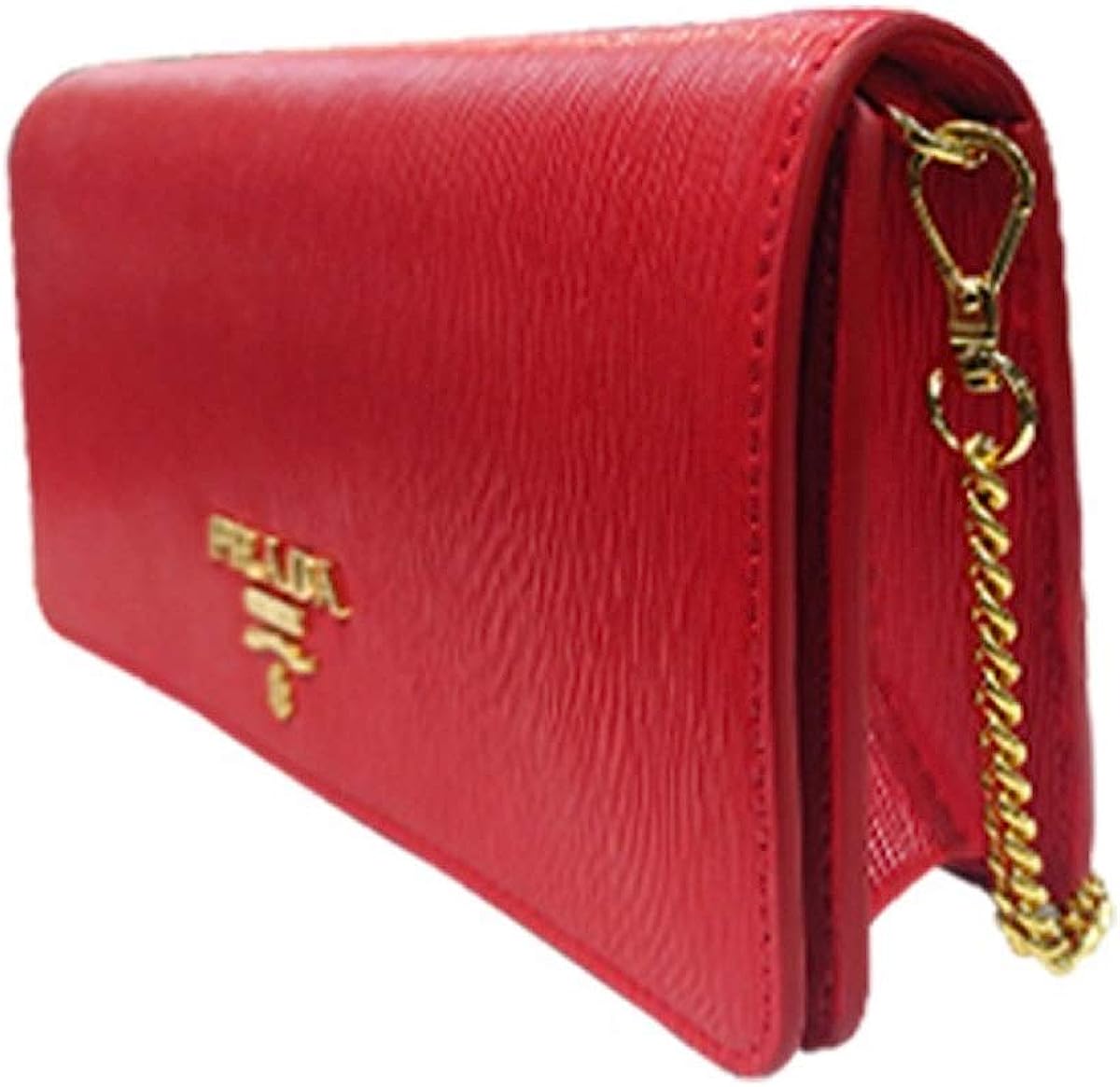 • Elevate your look with this Prada Vitello Move chain wallet! This piece is crafted from Lacca red calfskin leather, featuring the iconic gold Prada logo on the front face.