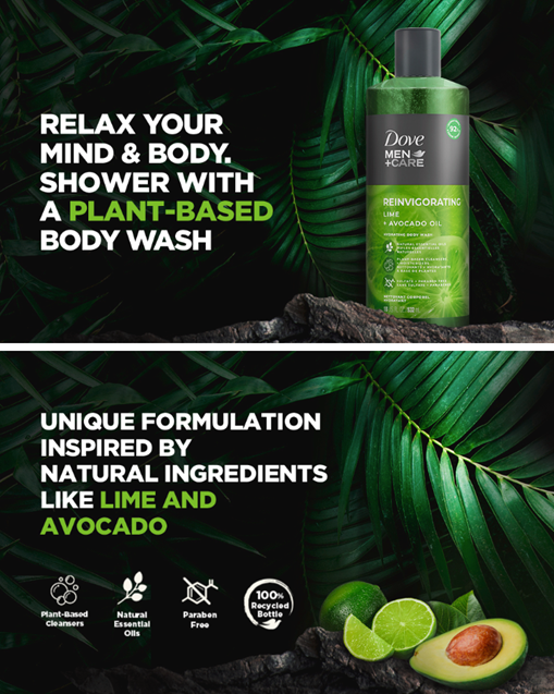 Dove Men + Care Lime + Avocado Oil Body Wash for men hydrates skin while offering you a relaxing and invigorating shower experience. Made with natural essential oils and plant-based cleansers, this body wash washes away tough germs and moisturizes your skin. This essential shower gel delivers clean and comfortable skin in just one shower. This body wash does what it promises: it's tough on odor, but not on your skin. Hit the reset button for your body and mind from the moment you apply it and take in the natural scents of Lime and Avocado Oil. Sulfate-free and cruelty-free, this natural inspired body wash not only provides care for your skin, but also for the planet. Following Dove's global commitment to more sustainable packaging, we've designed every bottle to be recyclable and made with 100% recyclable plastic. And we're proud of what we've made. If you're looking for further proof, complete your grooming routine with the entire Dove Men + Care naturals range. Pair this body wash with the Dove Men + Care Eucalyptus + Birch Anti-Perspirant or the Dove Men + Care Eucalyptus+ Birch Dry Spray. Or try our Dove Men + Care Body Wash, available in purifying scents like Charcoal + Clove and refreshing ones like Eucalyptus + Cedar.
