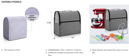 DIMENSIONS: 14''( L ) x 9''( W ) x 15.8''( H ). Sufficient enough to keep your mixer dust free.