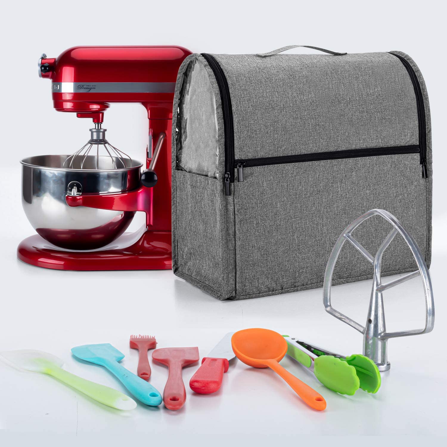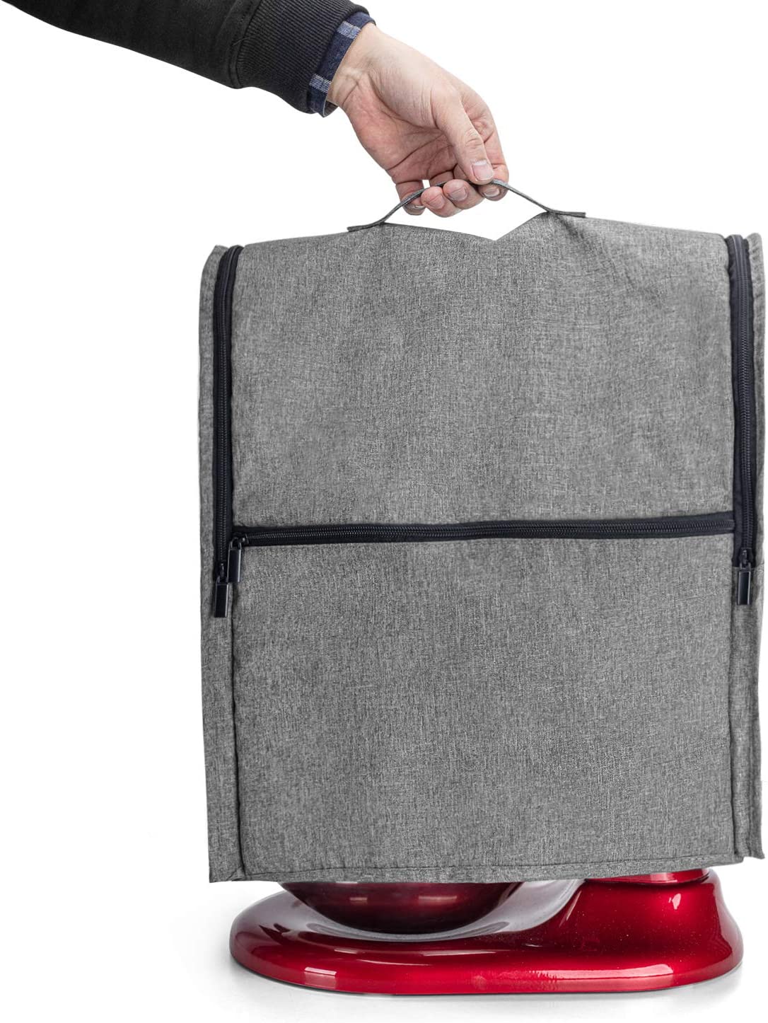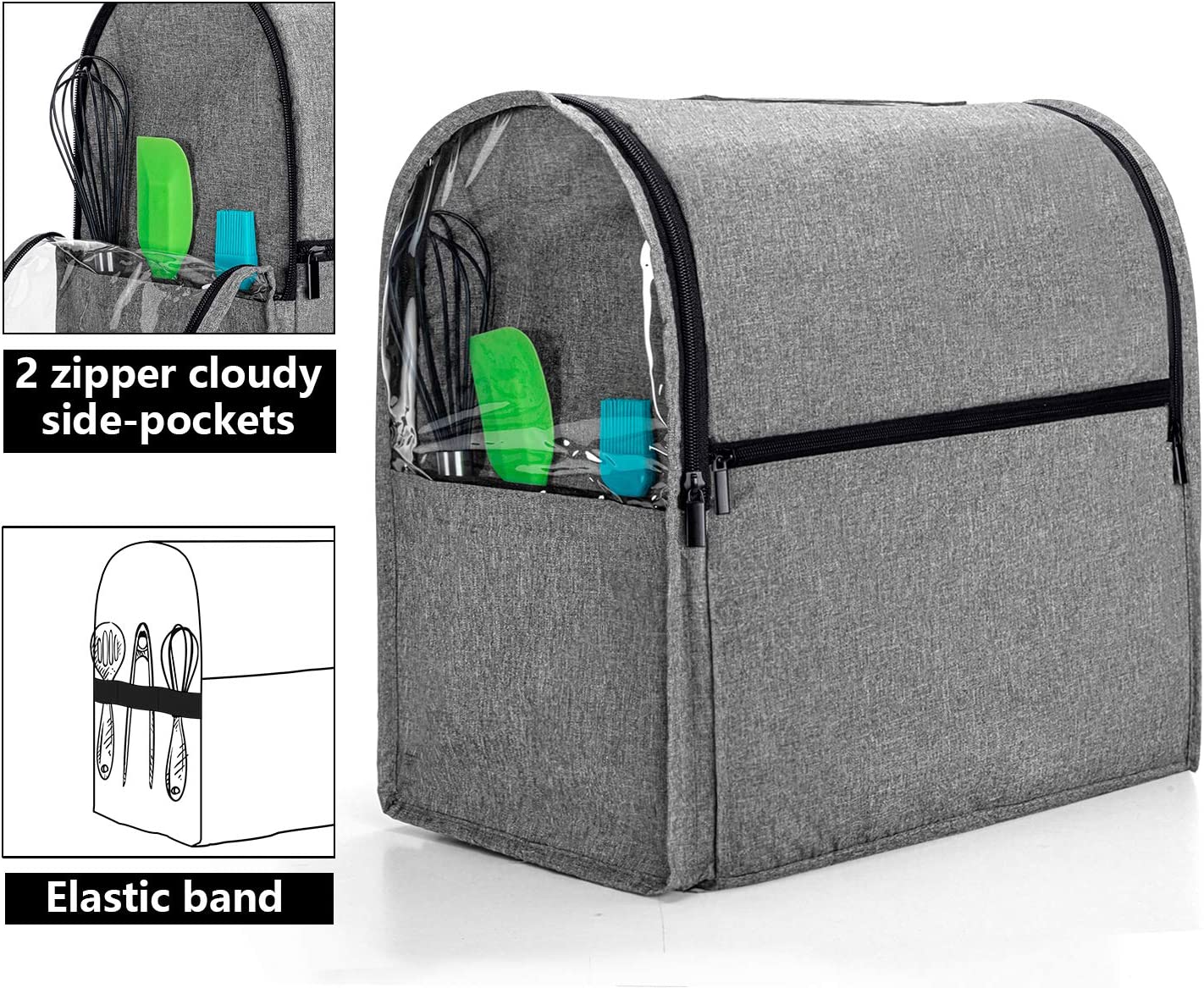 Luxja Dust Cover for 6-8 Quart KitchenAid Mixers (with Clear Side Zipper Pockets), Dust Cover with Top Handle for 6-8 Quart Stand Mixers and Extra Accessories, Gray